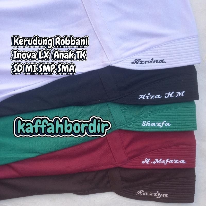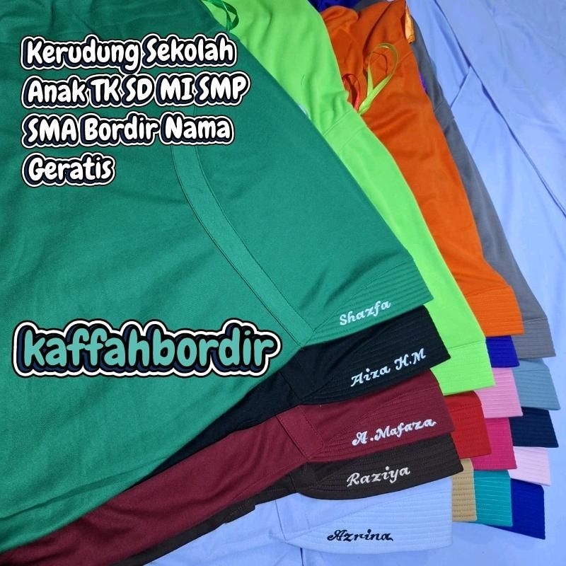HIJAB / JILBAB SEKOLAH BORDIR NAMA / KERUDUNG RABBANI SERUT INSTAN UKURAN TK SD MI SMP SMA