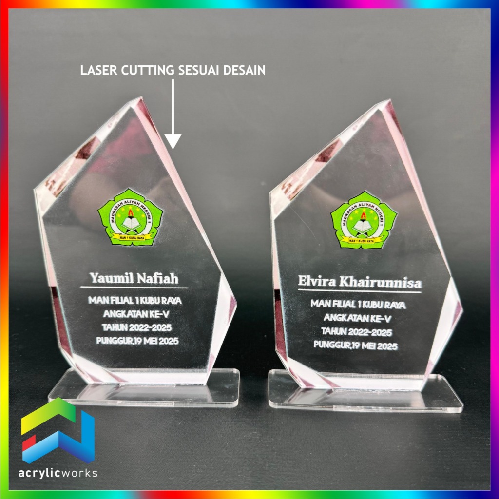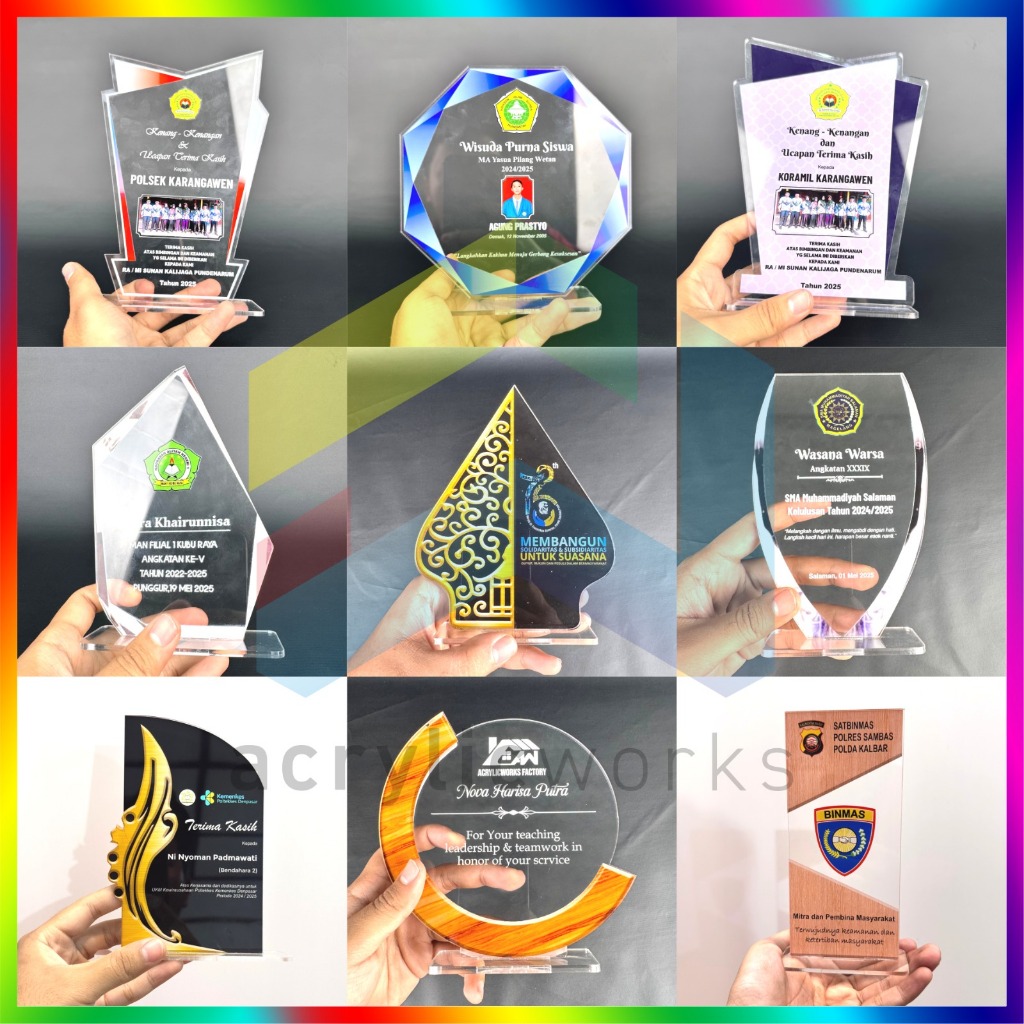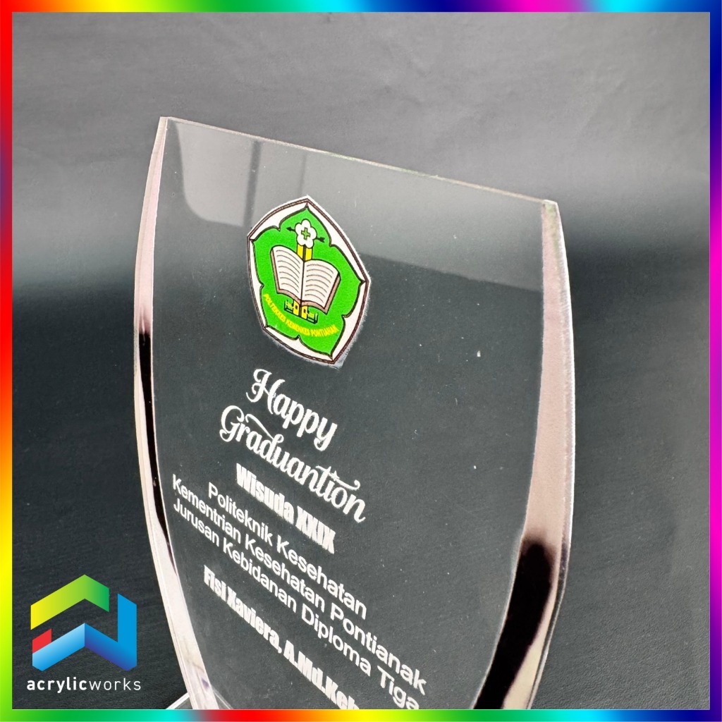 PLAKAT AKRILIK WISUDA TROPHY PENGHARGAAN UV PRINT CUSTOM DESIGN BEBAS MURAH CEPAT