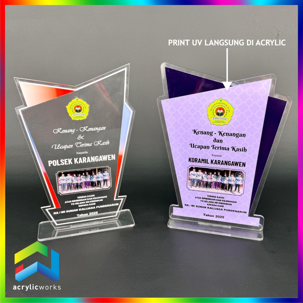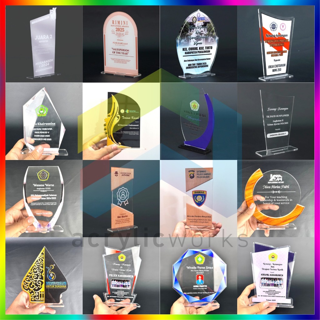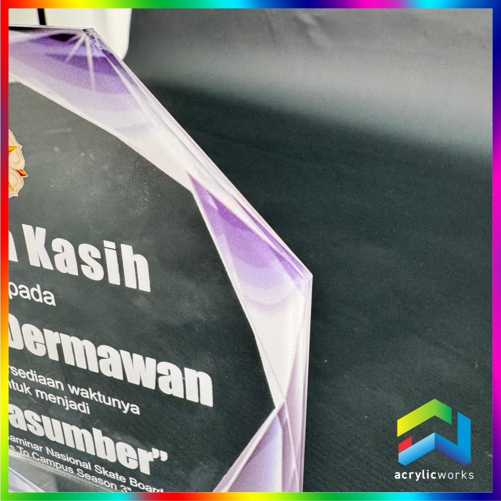 PLAKAT AKRILIK WISUDA TROPHY PENGHARGAAN UV PRINT CUSTOM DESIGN BEBAS MURAH CEPAT