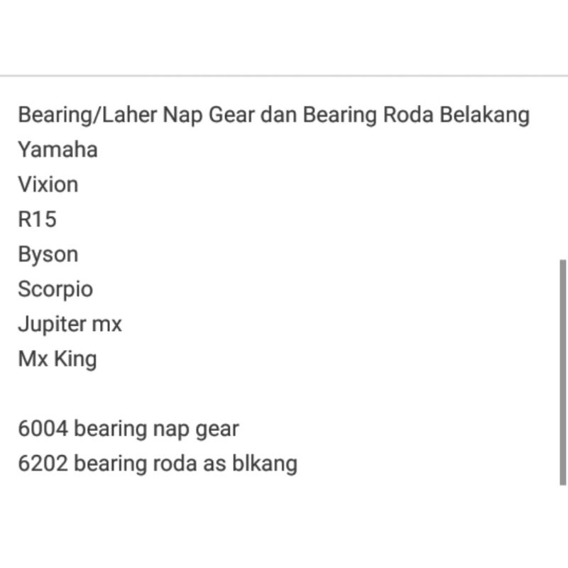 BEARING NAP GEAR 6004+6202 DAN RODA BELAKANG VIXION R15 BYSON SCORPIO JUPITER MX - MX KING (6004+6202)ORI