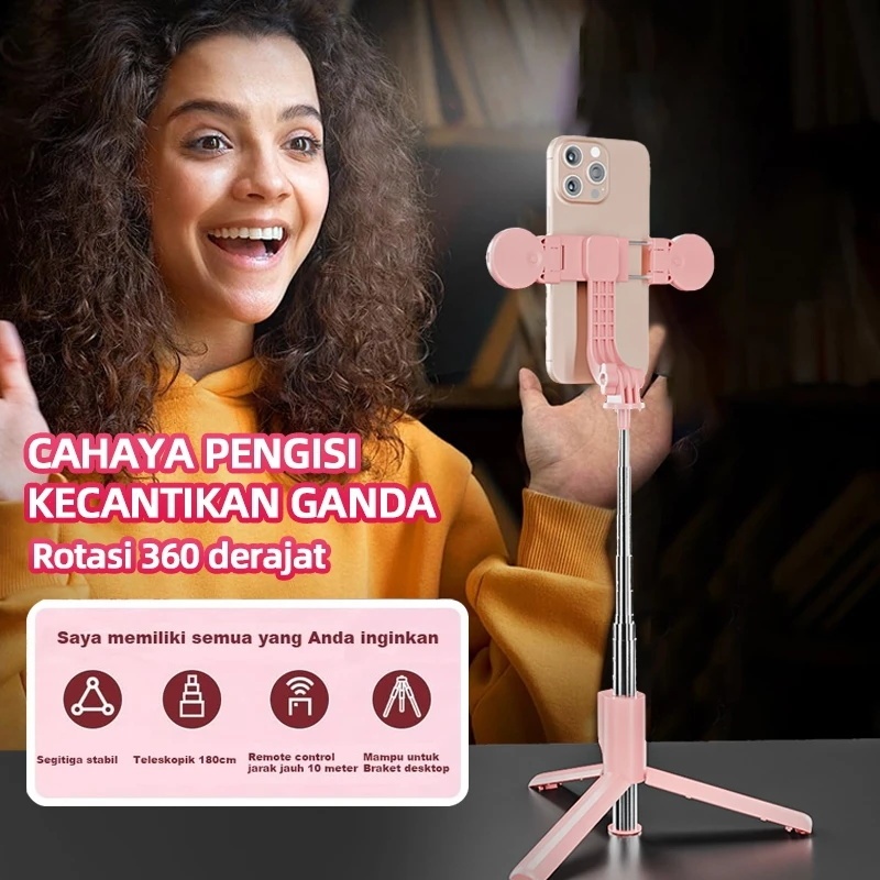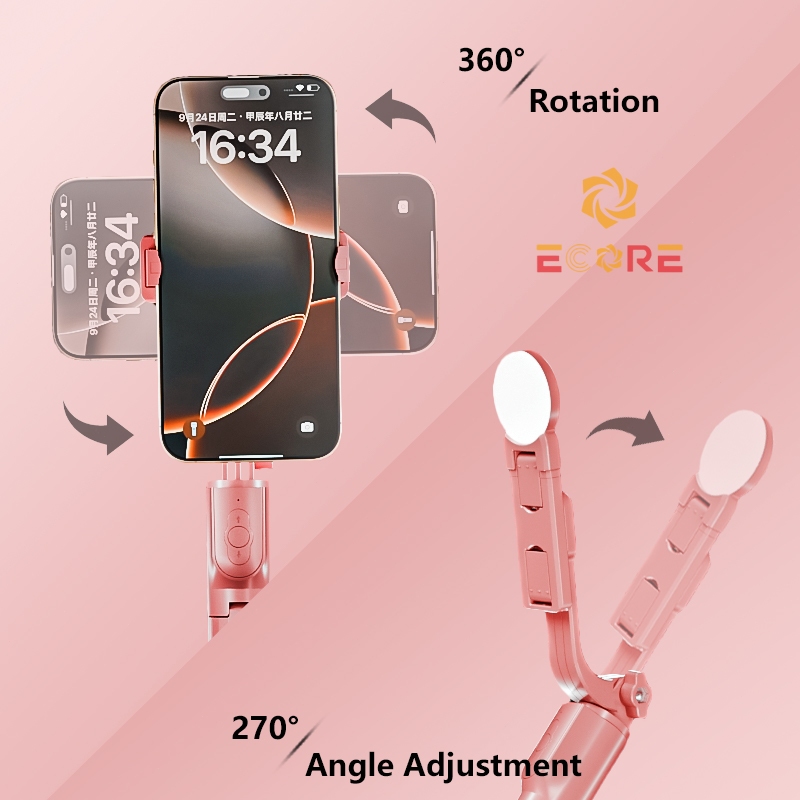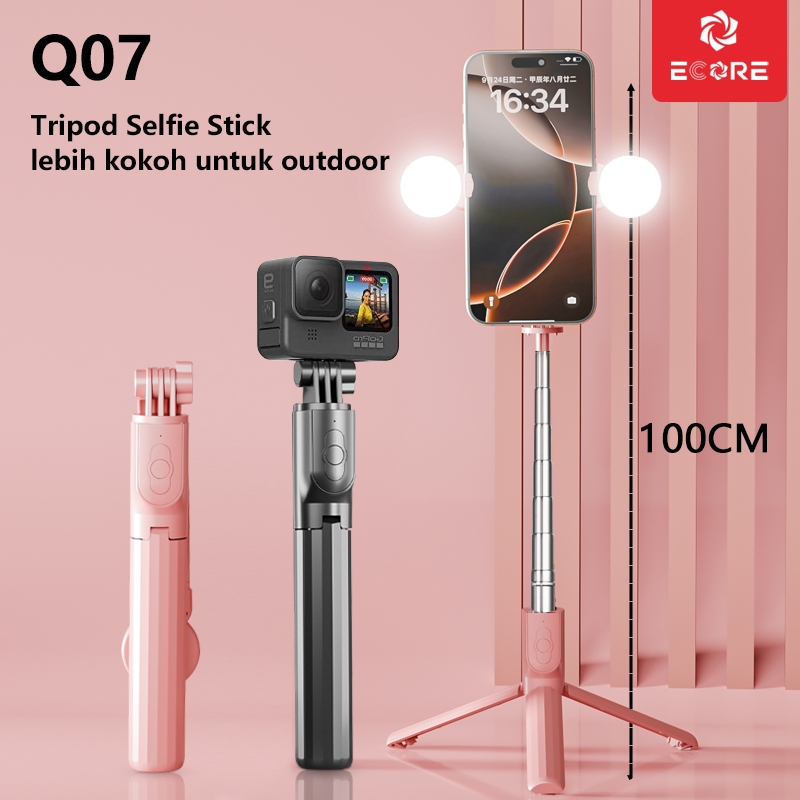 ECORE 100CM Tongsis Tripod Mini Selfie Stick Tongsis Bluetooth Selfie Stick Remote 3 in 1 Tongsis Portable LED Fill Light