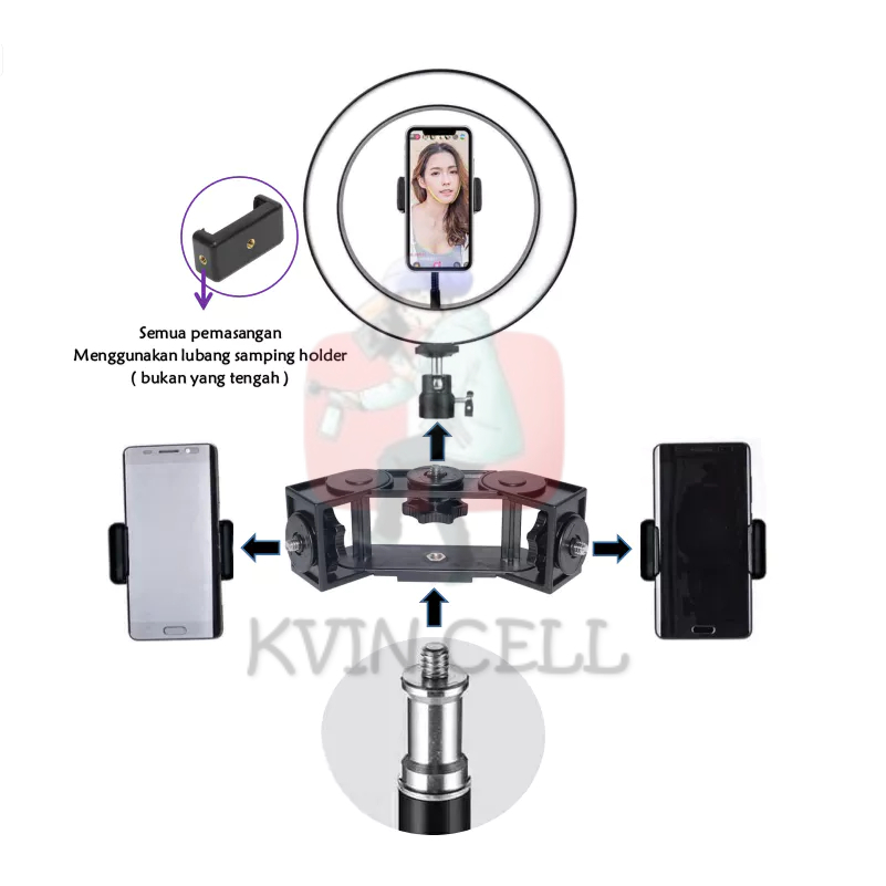 Paket Lampu Ring Light 26cm Live dan Tripod 2.1 Meter Free 3 Holder Hp Live Studio Streaming Striming Jualan Besar