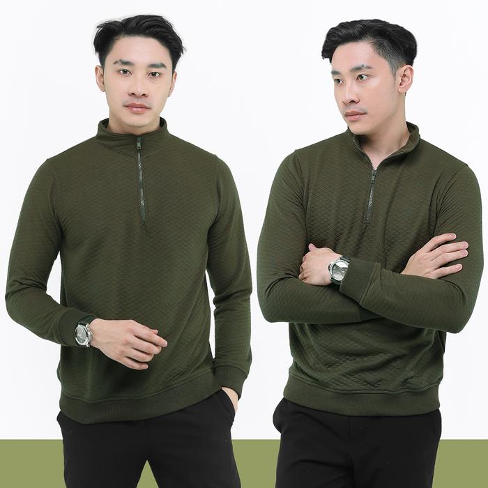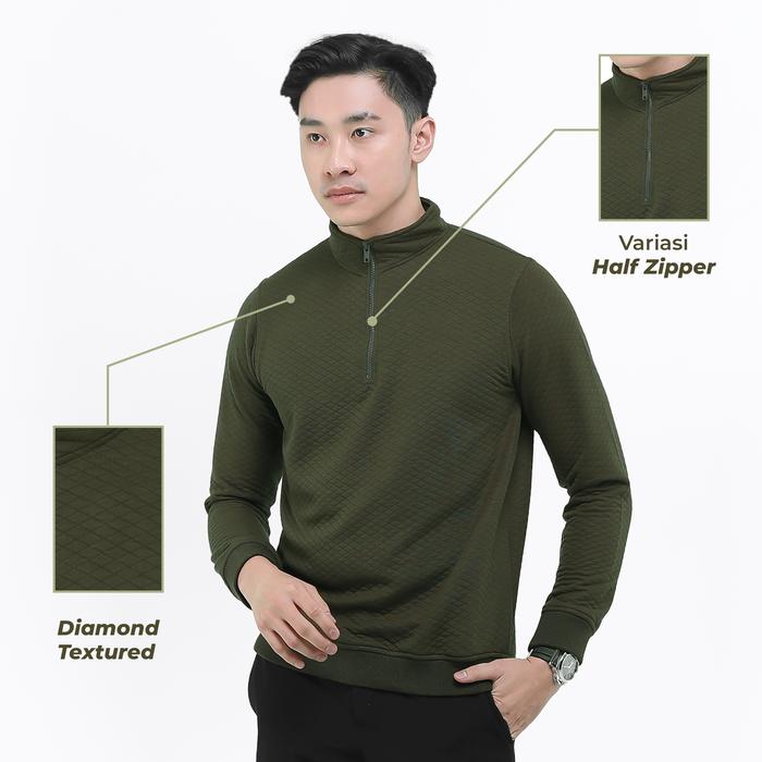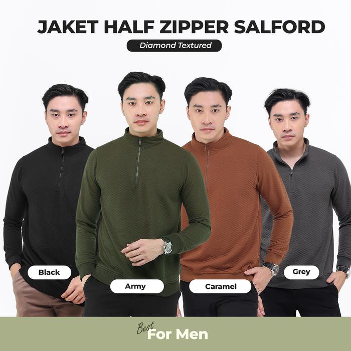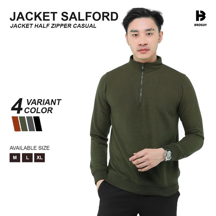 BROGUY Jaket Cowok Half Zipper Salford Material Blister Knit