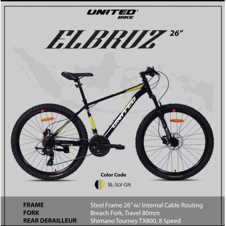 TERLARIS SEPEDA GUNUNG MTB 26 INCH UNITED DETROIT EZ ELBRUZ REM DISC BRAKE OPERANGIGI NEW