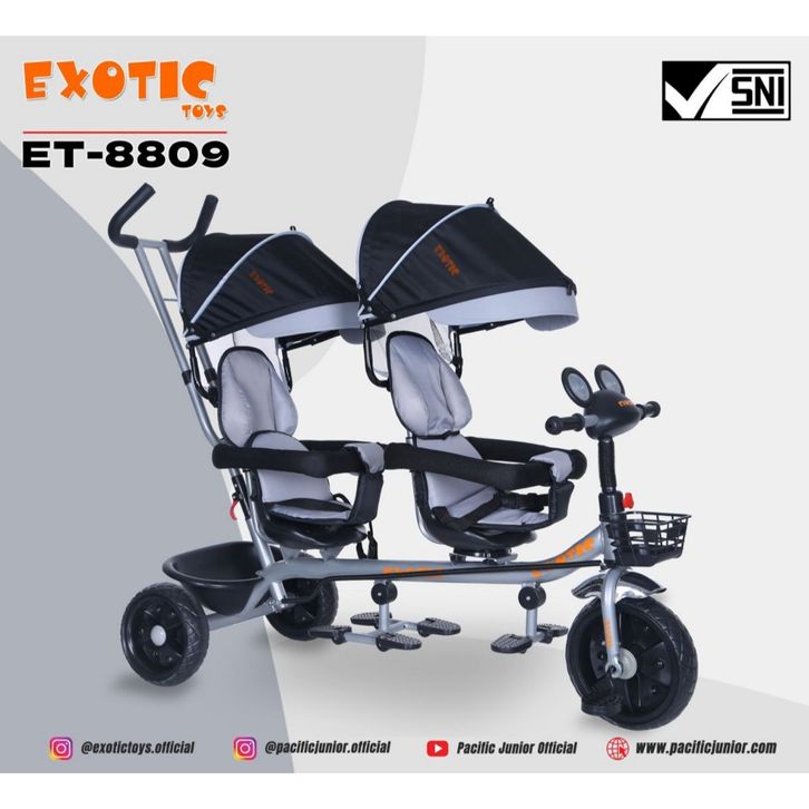 TERLARIS SEPEDA ROGA 3 TIGA EXOTIC ET-8809 TWINS KEMBAR BONCENGAN KURSI PUTAR TRICYCLE STROLLER ANAK