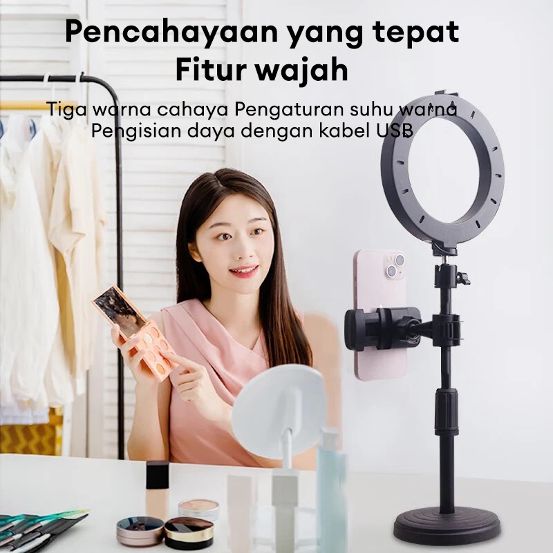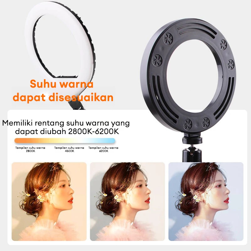 【Garansi 30 tahun】 Ring light 16cm+Tripod +2 Holder Lampu video makeup selfie siaran langsung