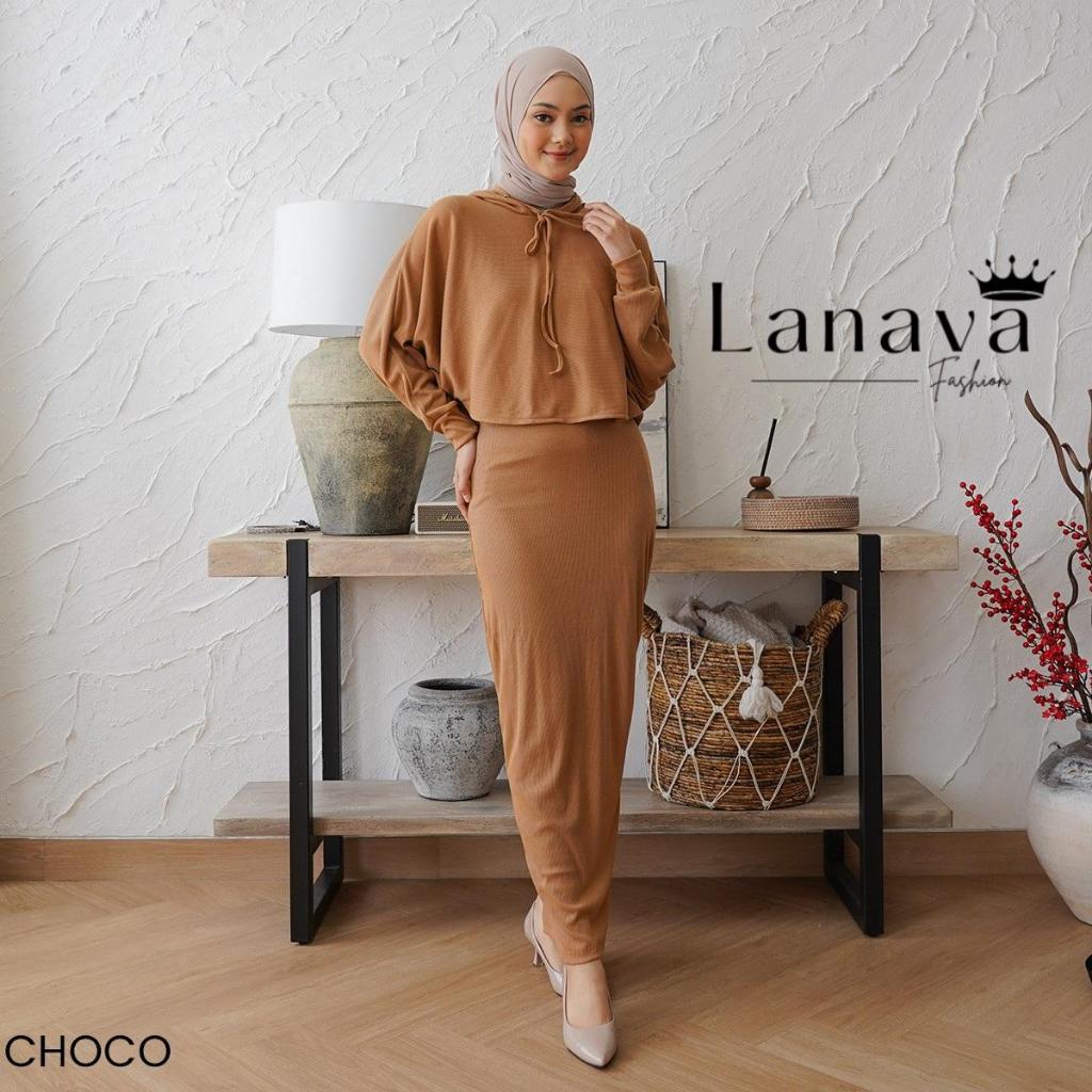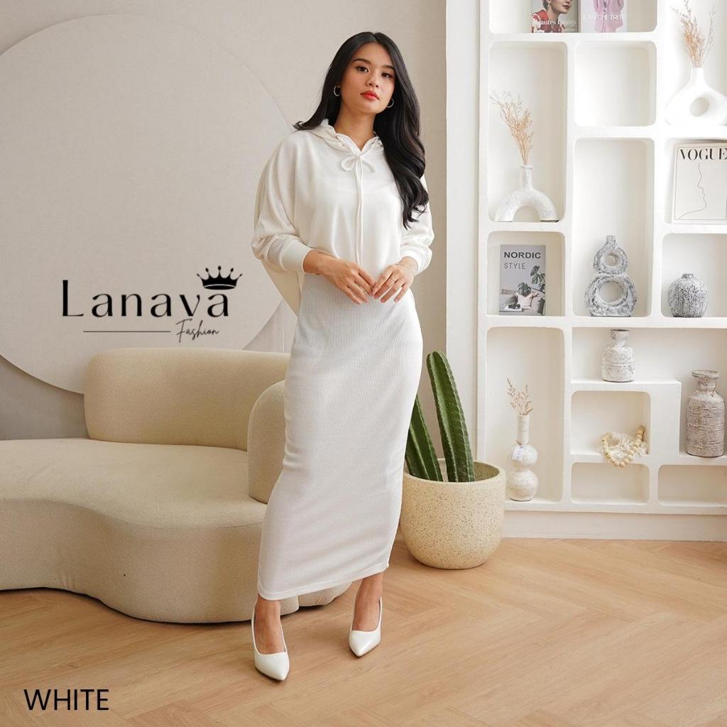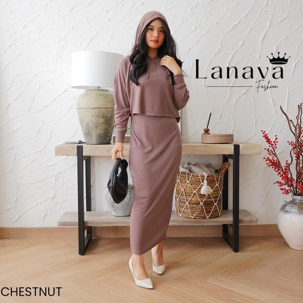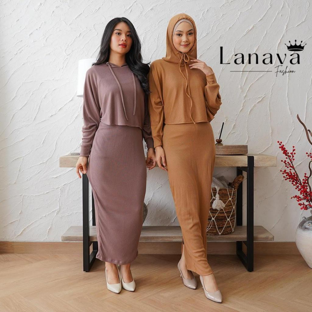 Lanava OneSet Wanita Dress Knit Setelan Serut Lengan Panjang Kekinian Bahan Rib Knit Adem