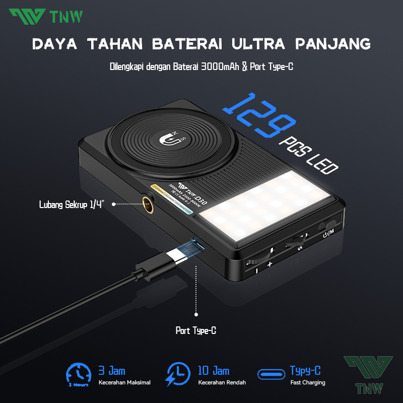 TNW D30 Selfie Light Portable Magnetic Fill Light Mini Dual Light Led Video Lampu Portable Lampu Camera Handphone