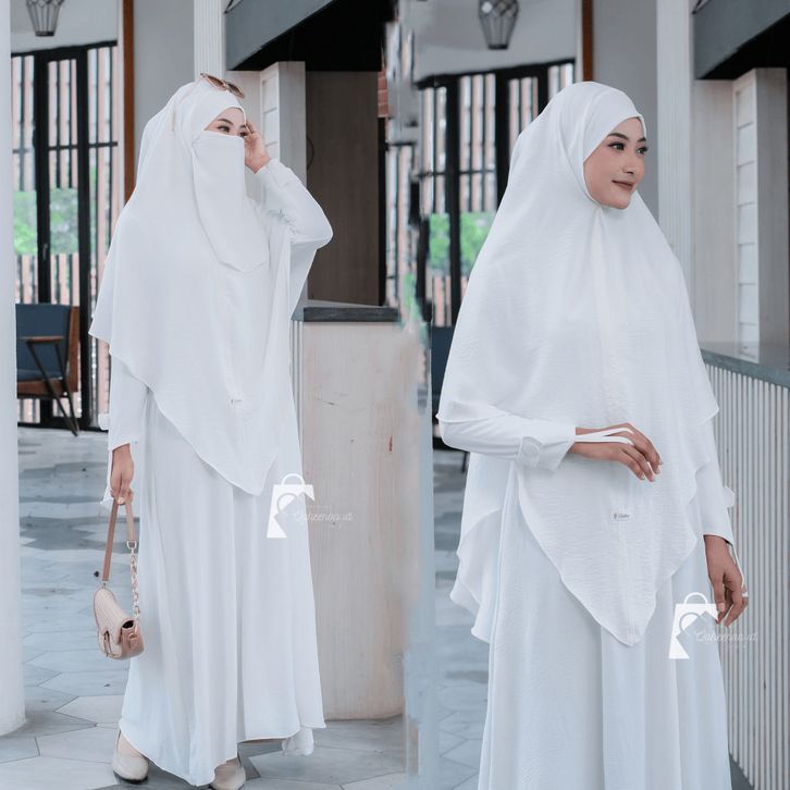 Abaya Wanita Free Cadar Set Kerudung Jumbo Syari | Busui Friendly | Gamis Umroh Nyaman Simple