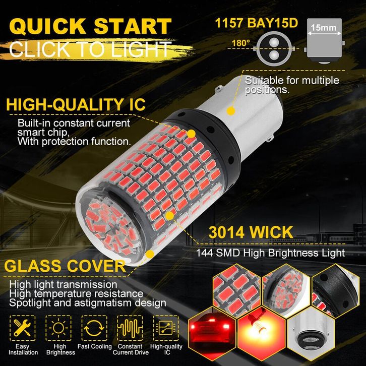 ISUN 144-Series Lampu LED Rem Brake 1157 BAY15D 144SMD 3014 DC12V/10W