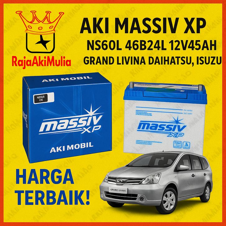 Promo AKI MASSIV XP BASAH 46B24L 12V45AH NS60L LIVINA/ GRAND LIVINA New
