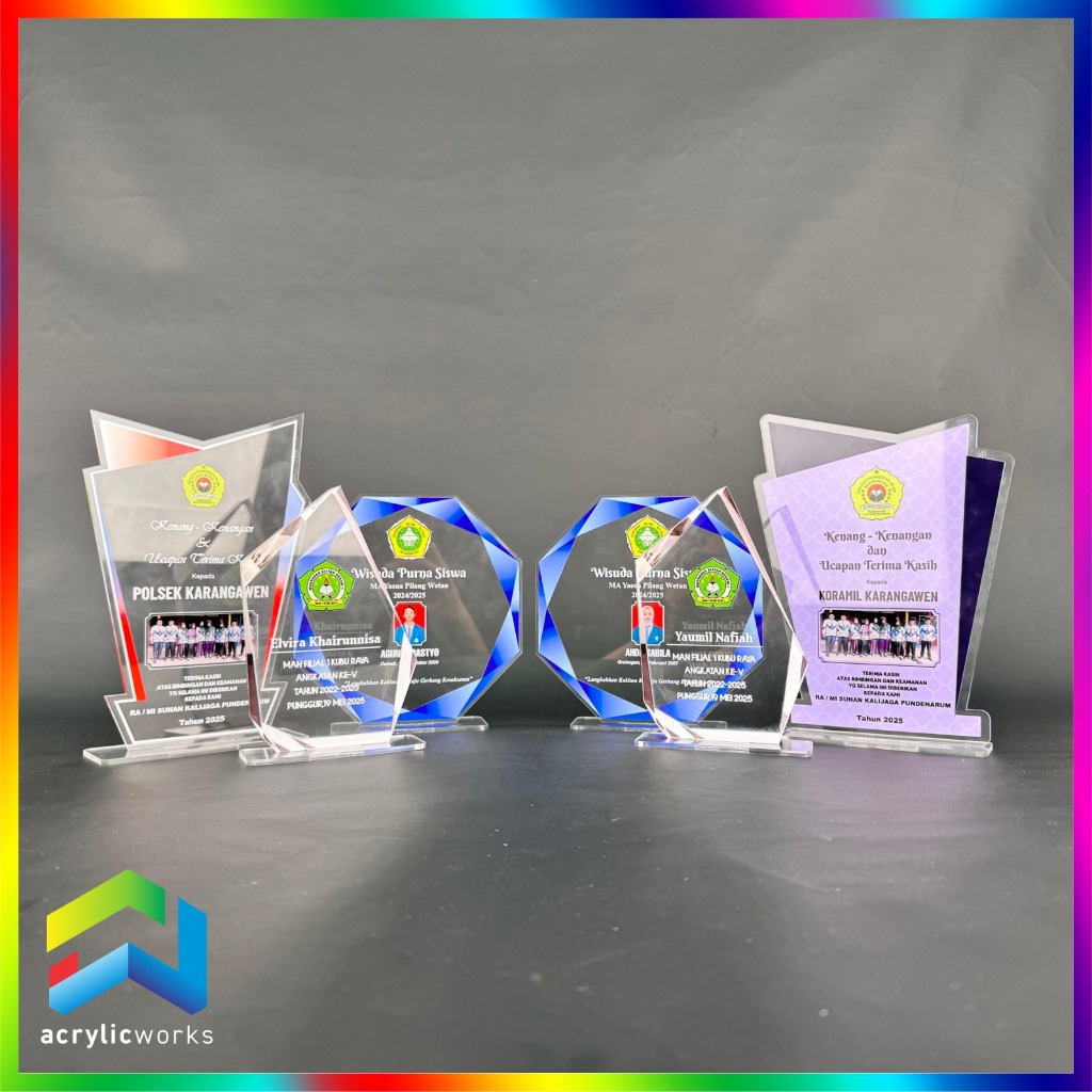 PLAKAT AKRILIK WISUDA TROPHY PENGHARGAAN UV PRINT CUSTOM DESIGN BEBAS MURAH CEPAT