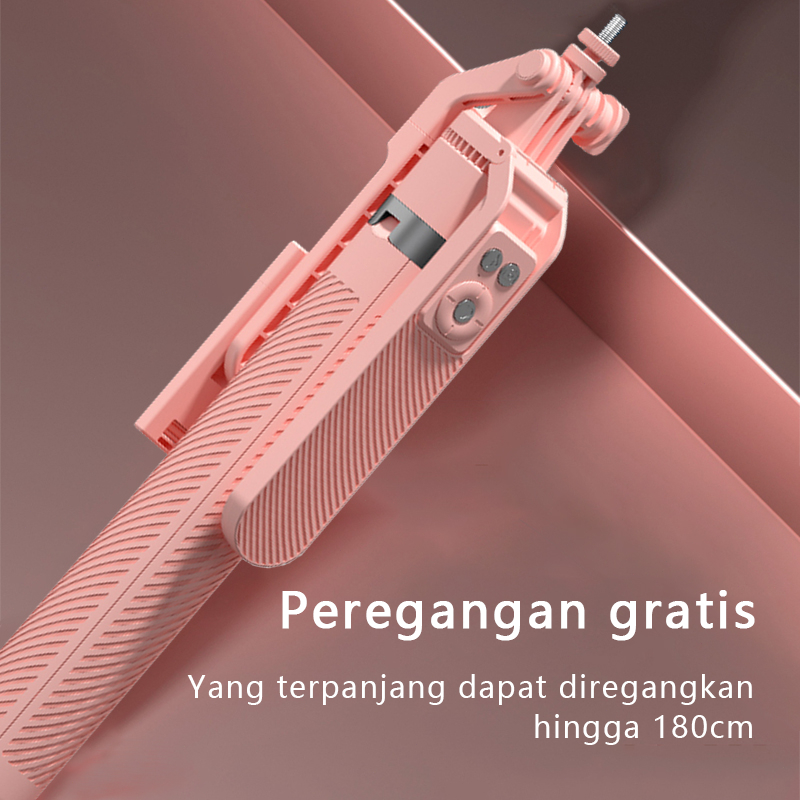 TOOREA Tongsis Tripod Selfie Stick 4-leg Bluetooth Remote Tripod HP Kamera DSLR Tongsis 1800MM dengan 7 tombol Adaptor Lampu LED
