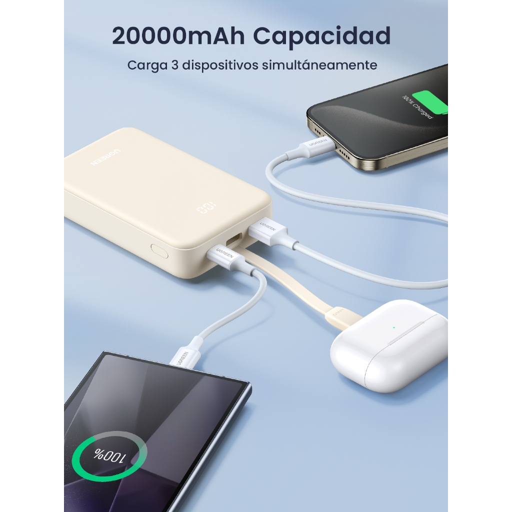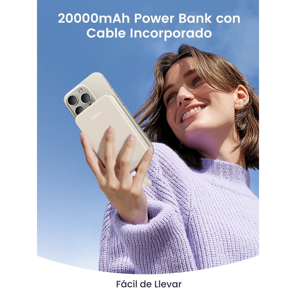 UGREEN Power Bank 20.000mAh PD QC 3.0 Fast Charging 22.5W LED Built in Cable Type C 35340