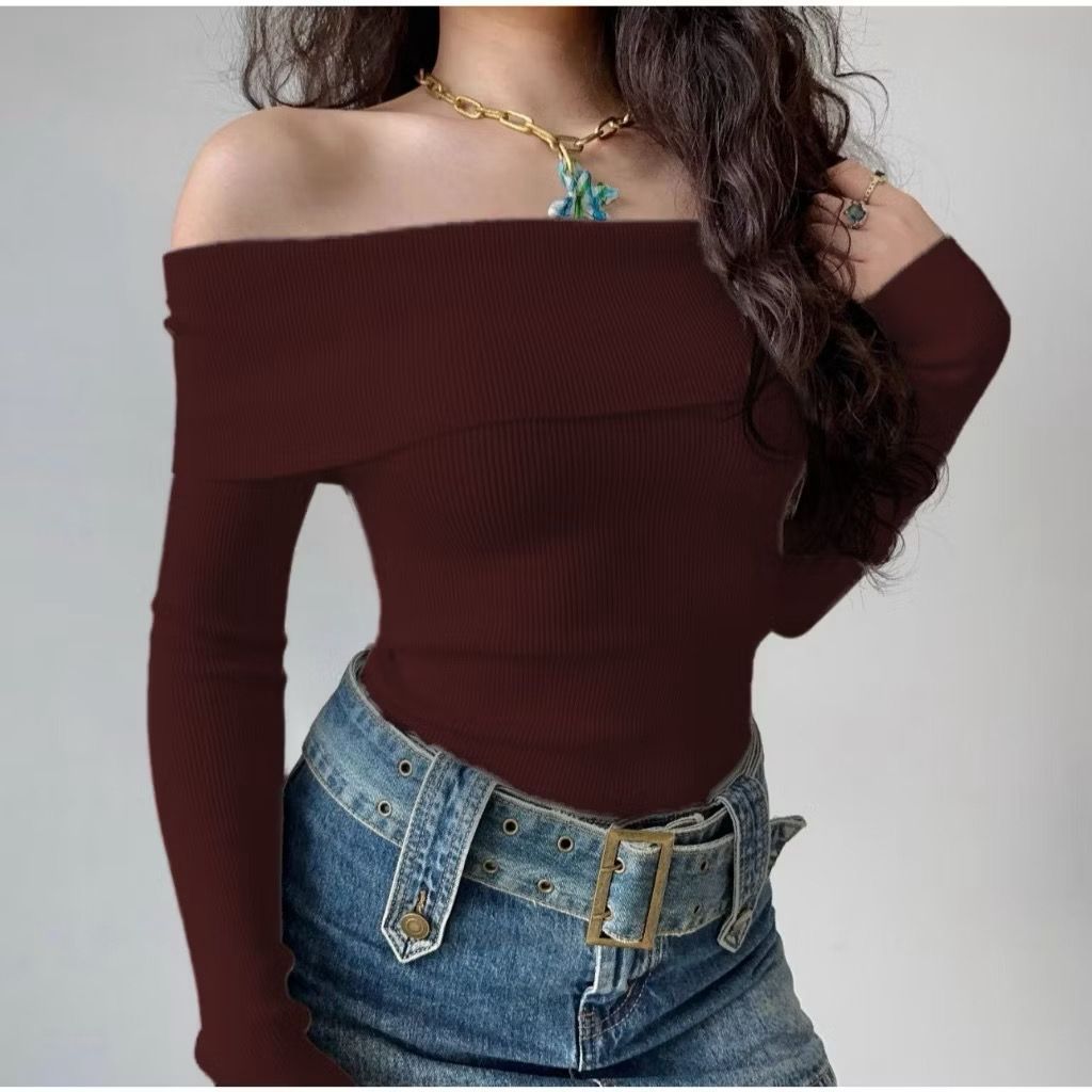 FD Fashion / Sabrina Crop Top - Crop Top Off Shoulder Lengan Panjang / One Shoulder Wanita / Blouse Atasan Wanita Suzy K