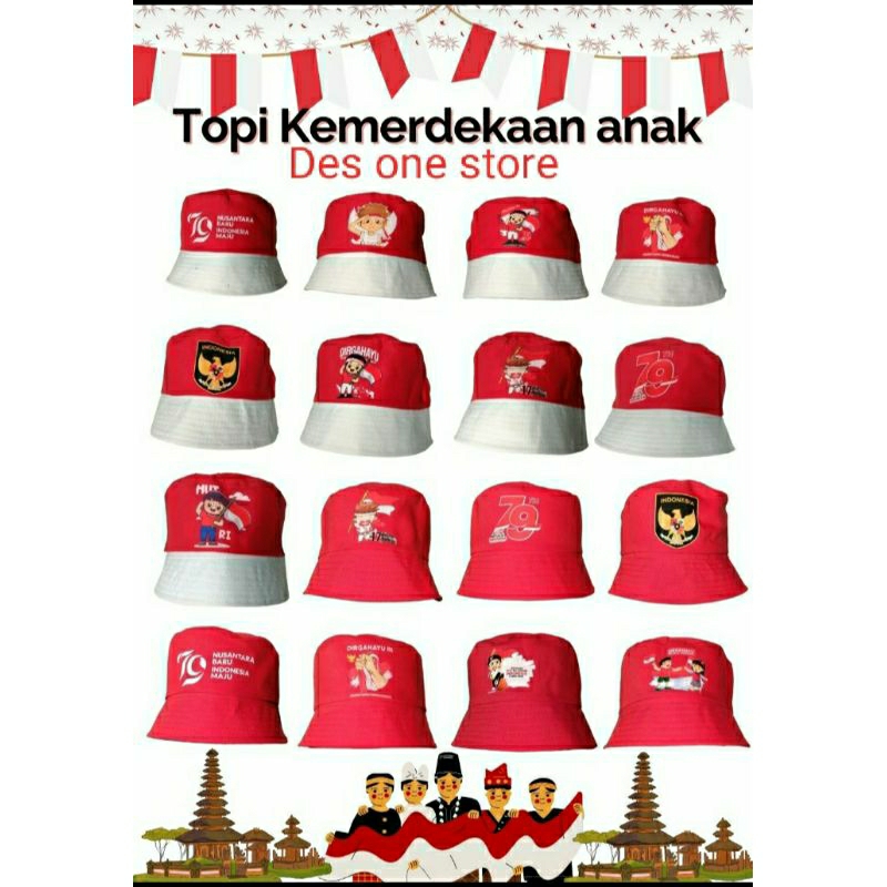 Topi kemerdekaan Topi Anak Laki Laki perempuan Hut kemerdekaan Indonesia usia 2-10 tahun topi Agustusan Topi Hut Ri 80 th