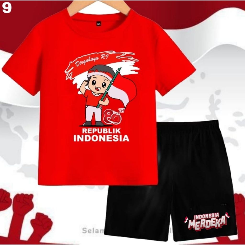 setelan anak 17 Agustus untuk usia2-10thn/kaos anak merah putih kemerdekaan HUT RI