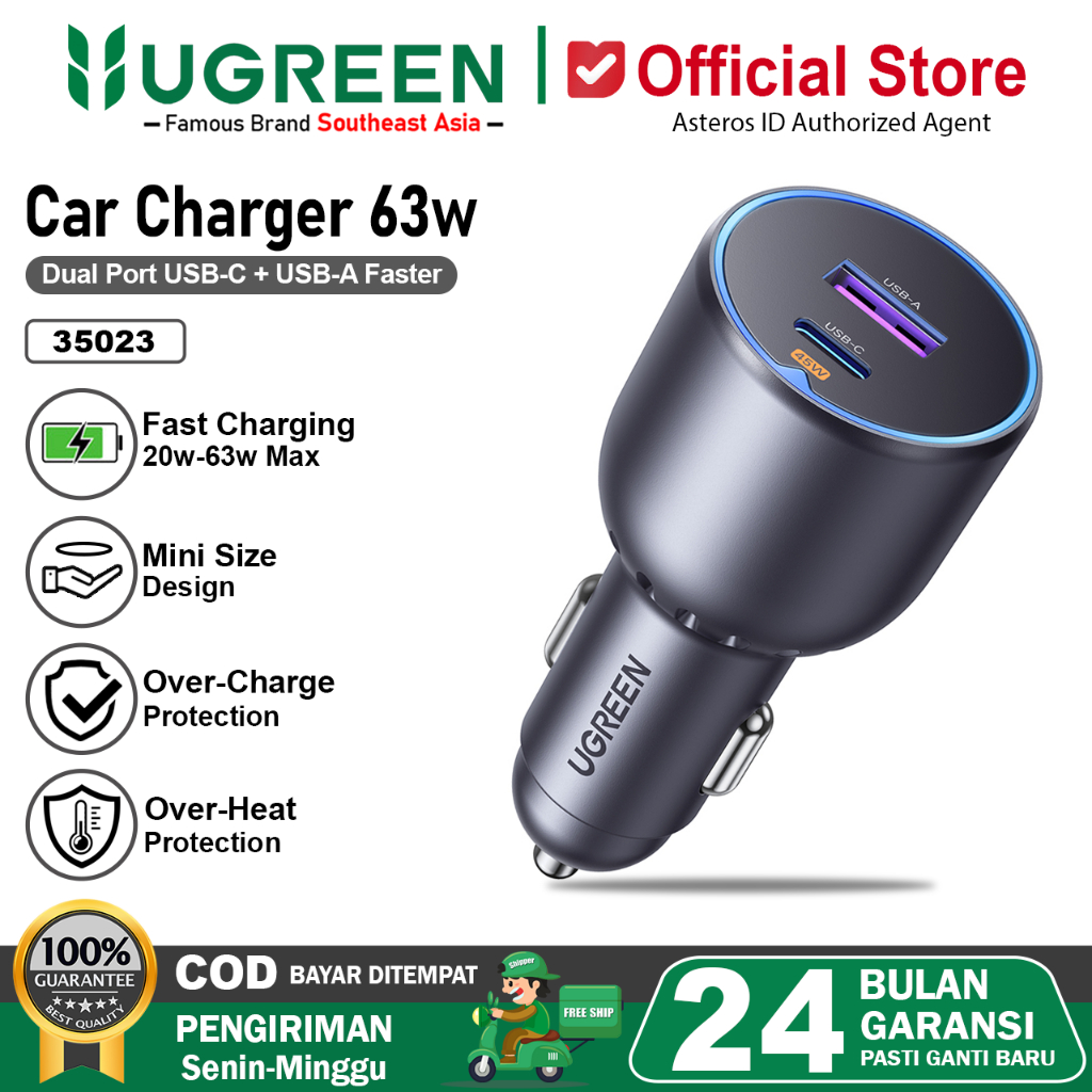 UGREEN Car Charger Dual Port USB A & Type C PD QC Fast Charging 63W 35023