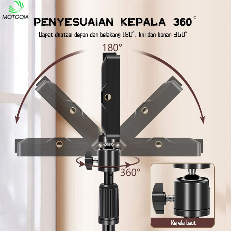 Motoqia Led Lampu Stand Holder Selfie Stick Portable Flexible lampu LED | Overhead Phone Stand Tripod + Led Lampu Stand Holder Phone Holder Tripod Lampu Konten Kreator Lighting