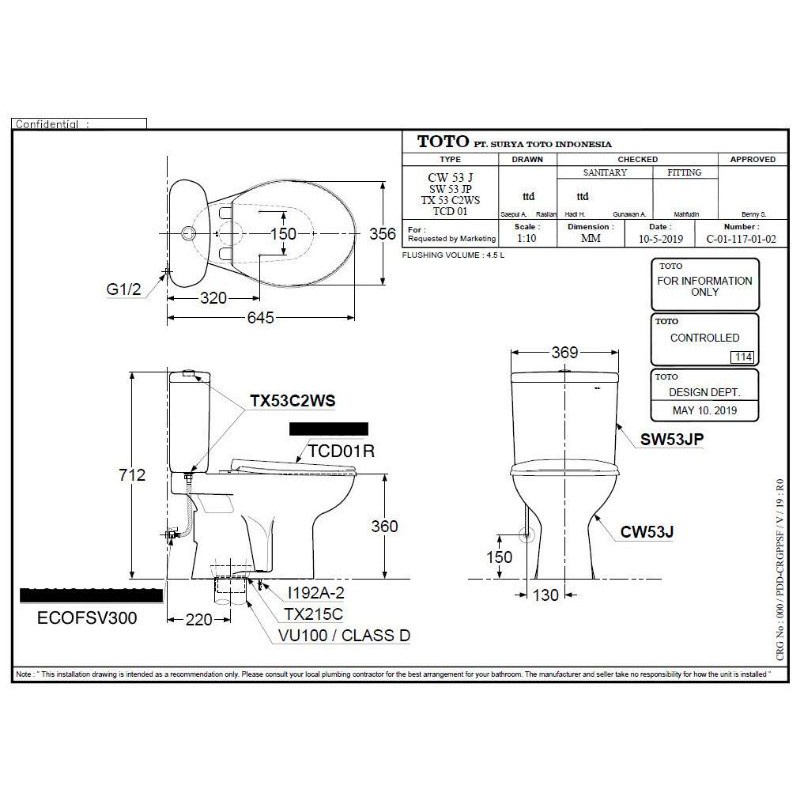 WC DUDUK TOTO KLOSET DUDUK TOTO + JET SHOWER LENGKAP TINGGAL PASANG + TEE KLOSET