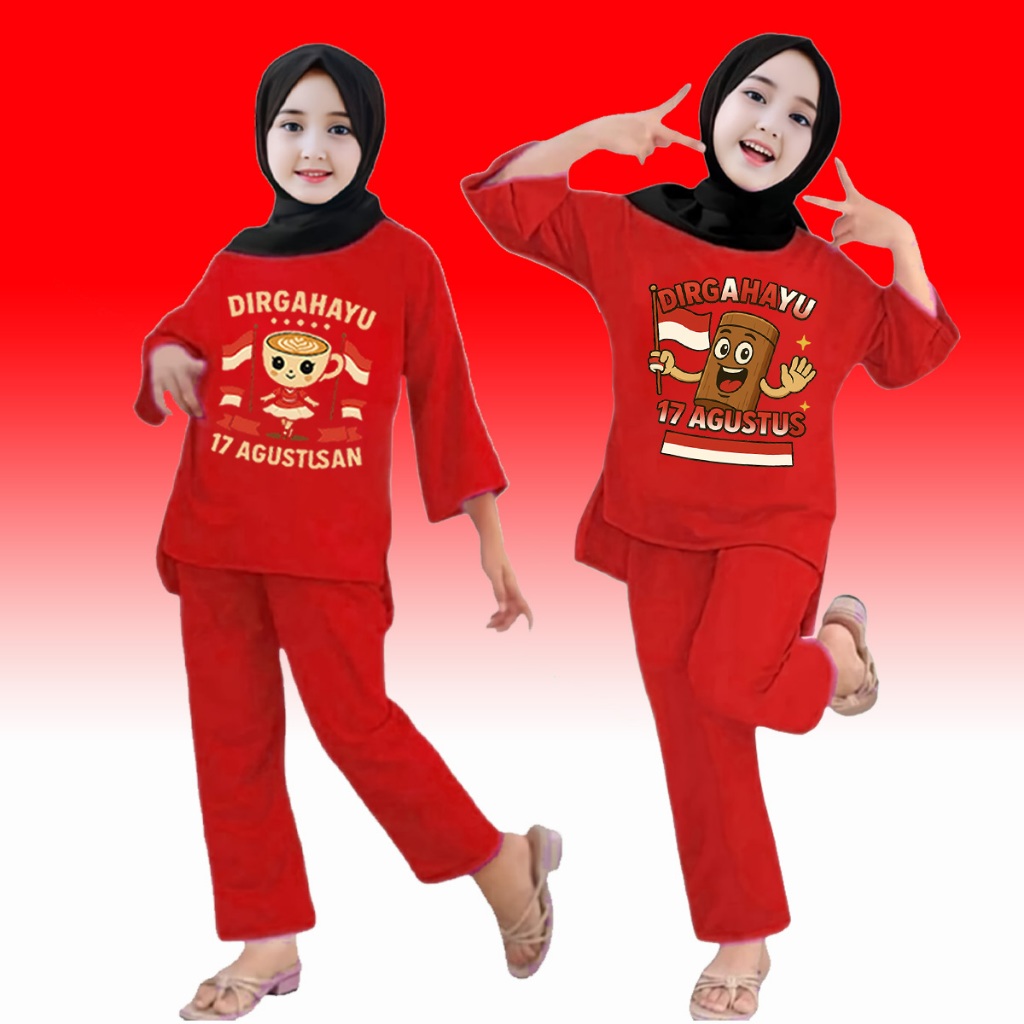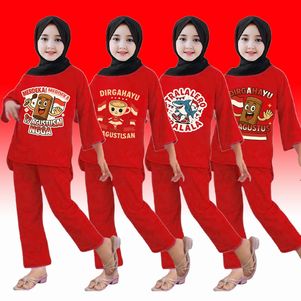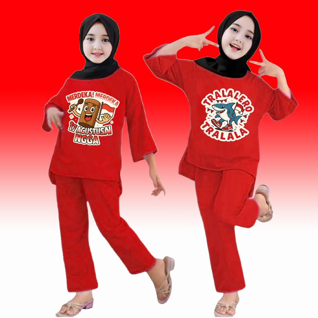 Setelan Anak Perempuan Tung Tung Sahur Ballerina Viral 3-12 Tahun Hut RI 17 Agustusan Baju Dirgahayu