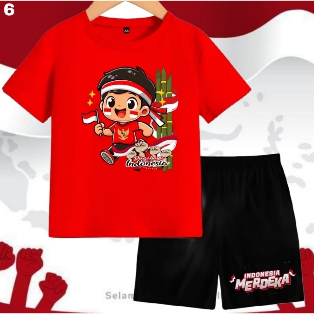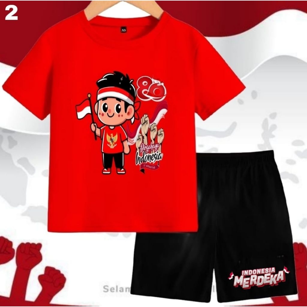 setelan anak 17 Agustus untuk usia2-10thn/kaos anak merah putih kemerdekaan HUT RI