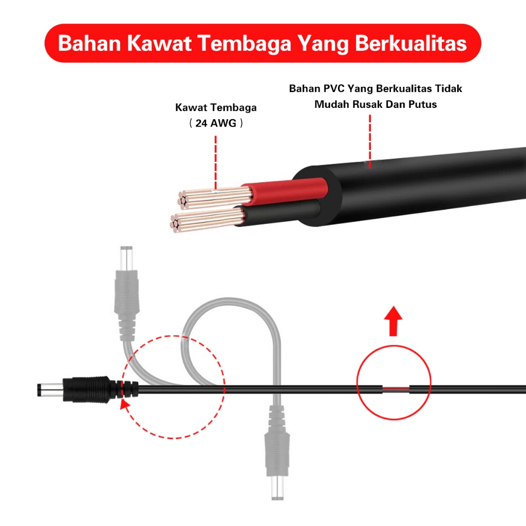 XIHANCAM Kabel DC 12V Kabel Power CCTV 5 10 Meter Koneksi Kabel