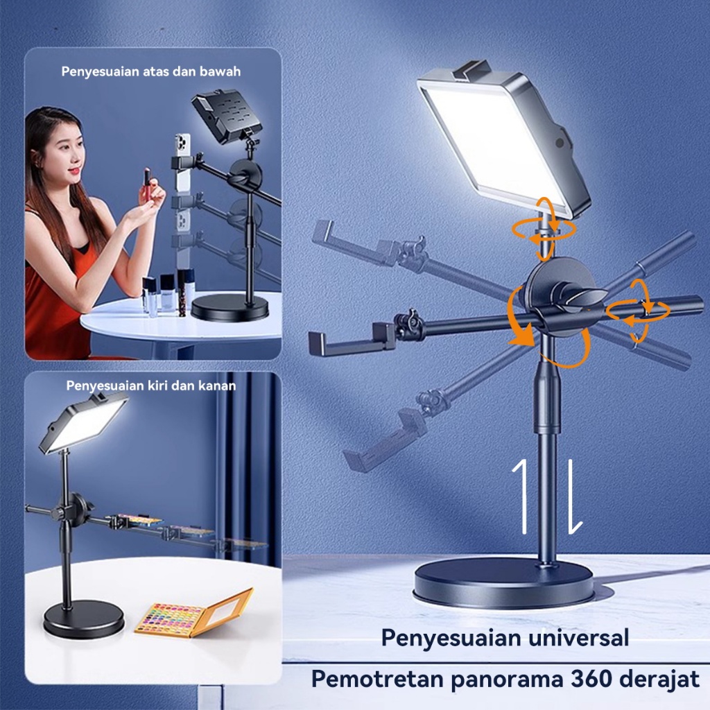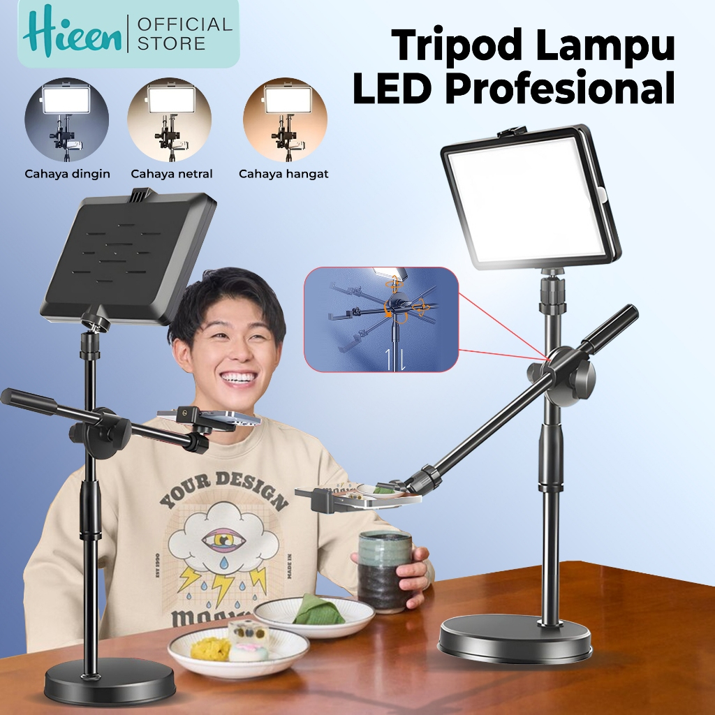 Hieen Overhead Stand Holder Handphone Tripod Konten Kreator Multifungsi Lampu LED Penerangan Ringlight / Gopro / Kamera TR51