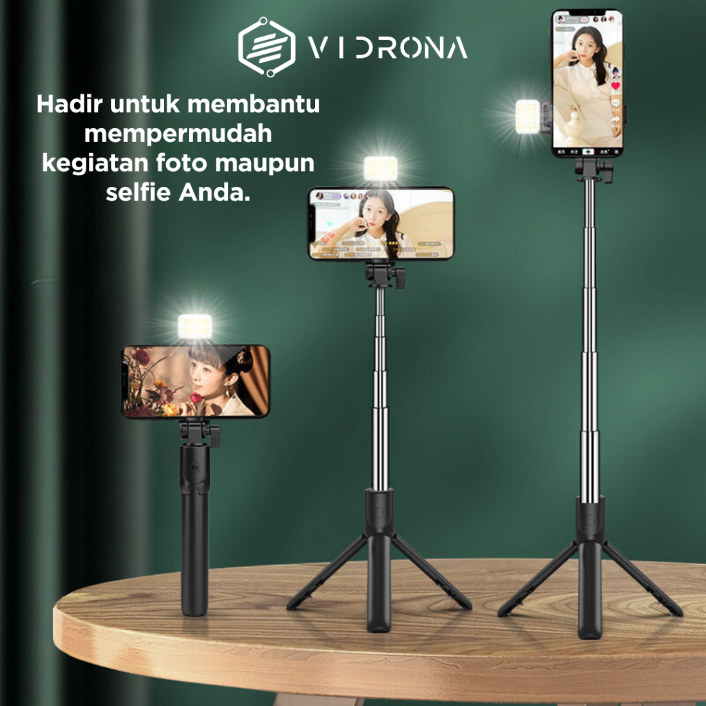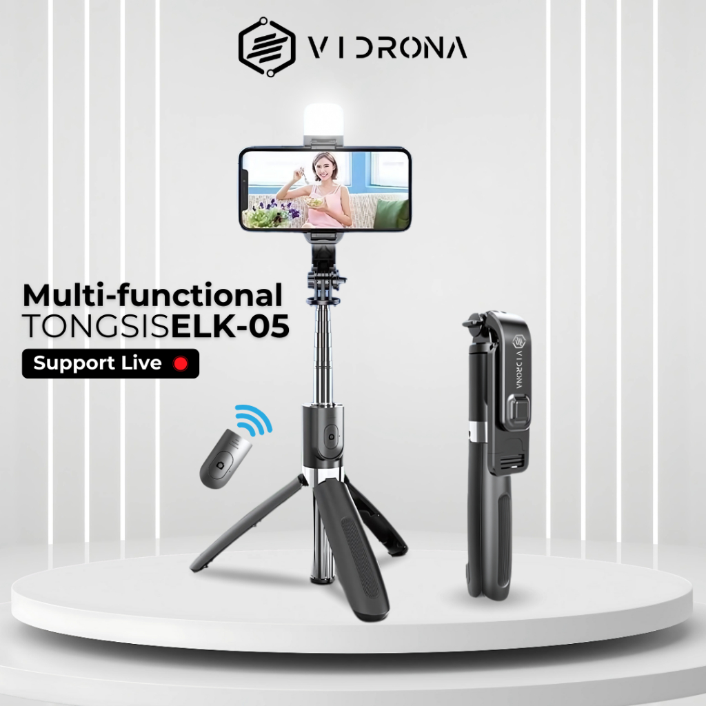 Vidrona ELK-05 Tongsis Tripod Dengan Lampu Led untuk Selfie dan Video 360º