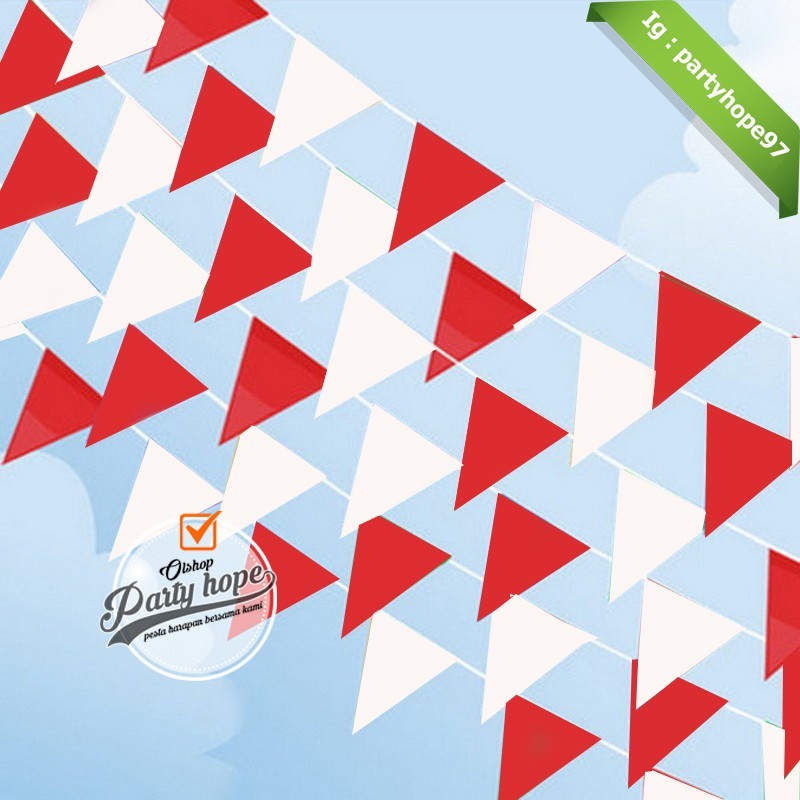 Bendera Kain Segitiga Warna Warni - Umbul Umbul Bendera Hias Bunting Flag 1 set 150 Bendera Panjang 55 Meter
