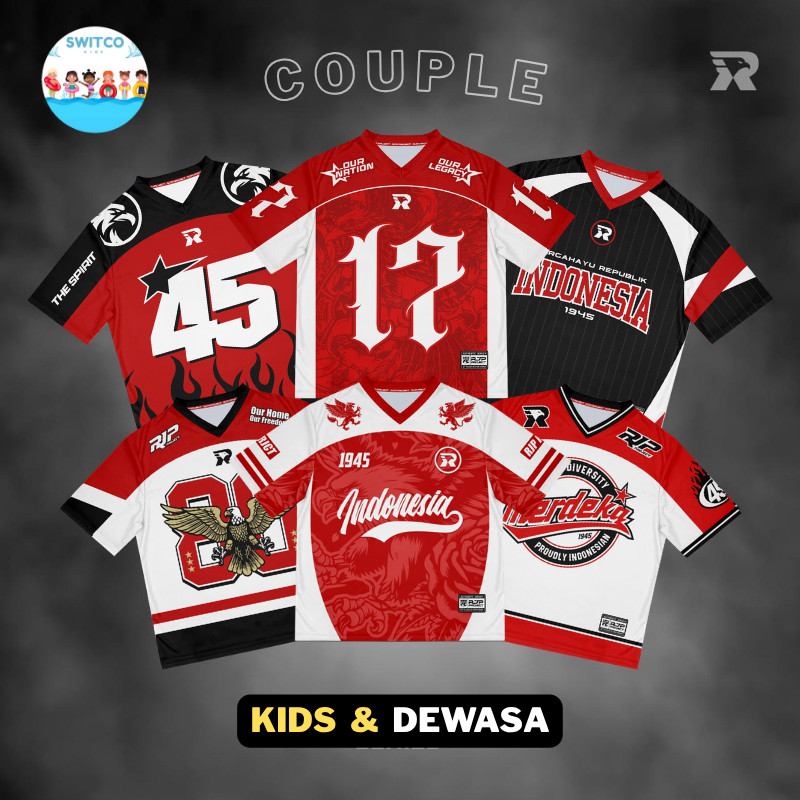 SWITCO | Kaos Jersey Anak Kemerdekaan Couple Keluarga 2025 Indonesia Dirgahayu Baju Laki Laki Wanita Perempuan 17 Agustus Series 1945