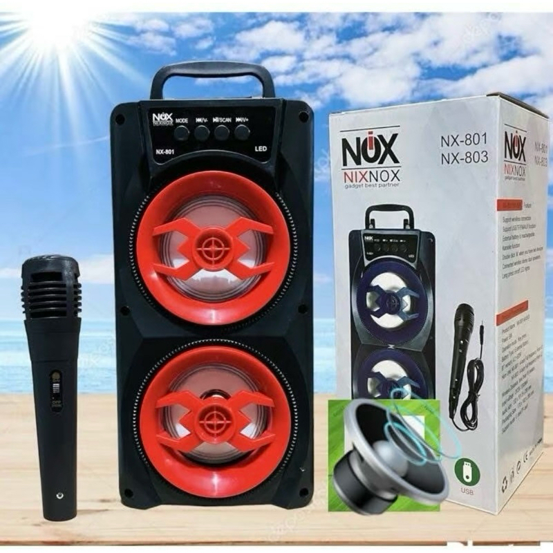 speaker bluetooth nixnox original portabel karaoke free mic PJ 801/802 speaker aktif termurah ki