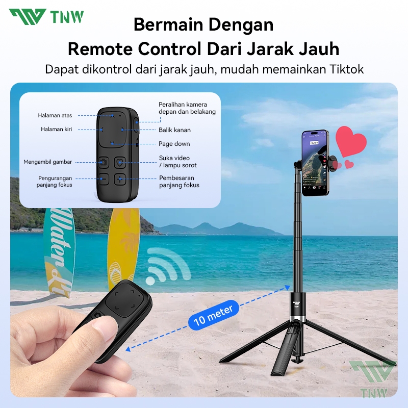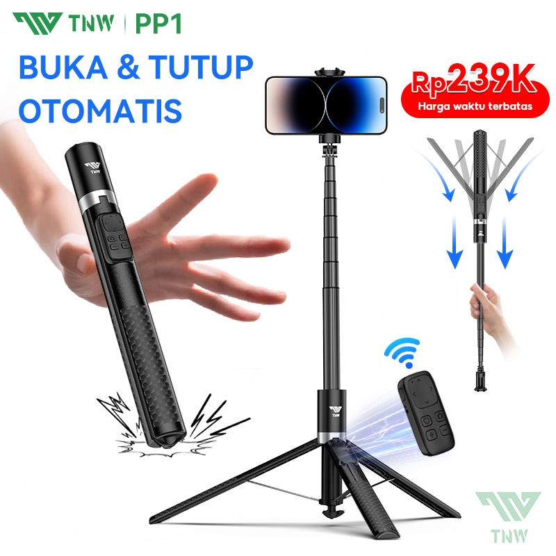 TNW PP1 Bluetooth Tongsis Tripod Pop Up Selfie Stick Portable Aluminium Quadpod Tongsis Fill Light Magnetik Remote
