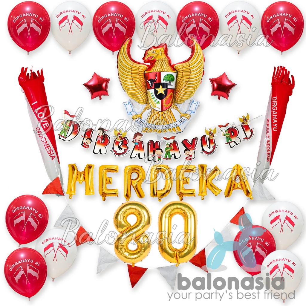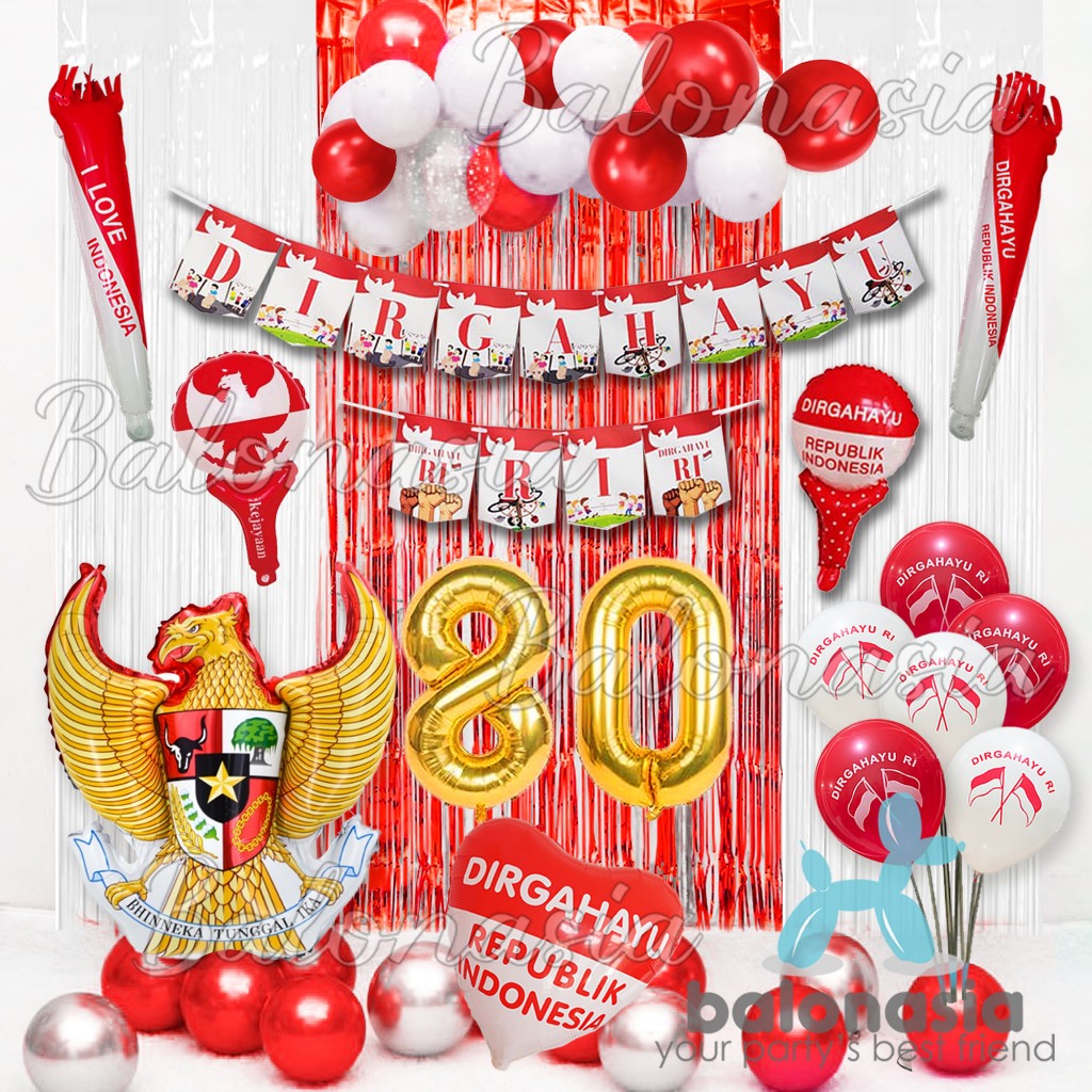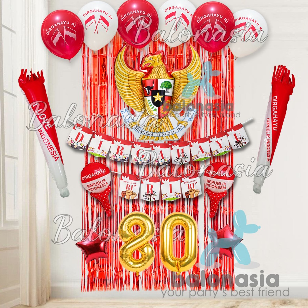 Dekorasi Dirgahayu HUT RI Garuda Tepuk Obor tirai Merah Putih 17 agustus