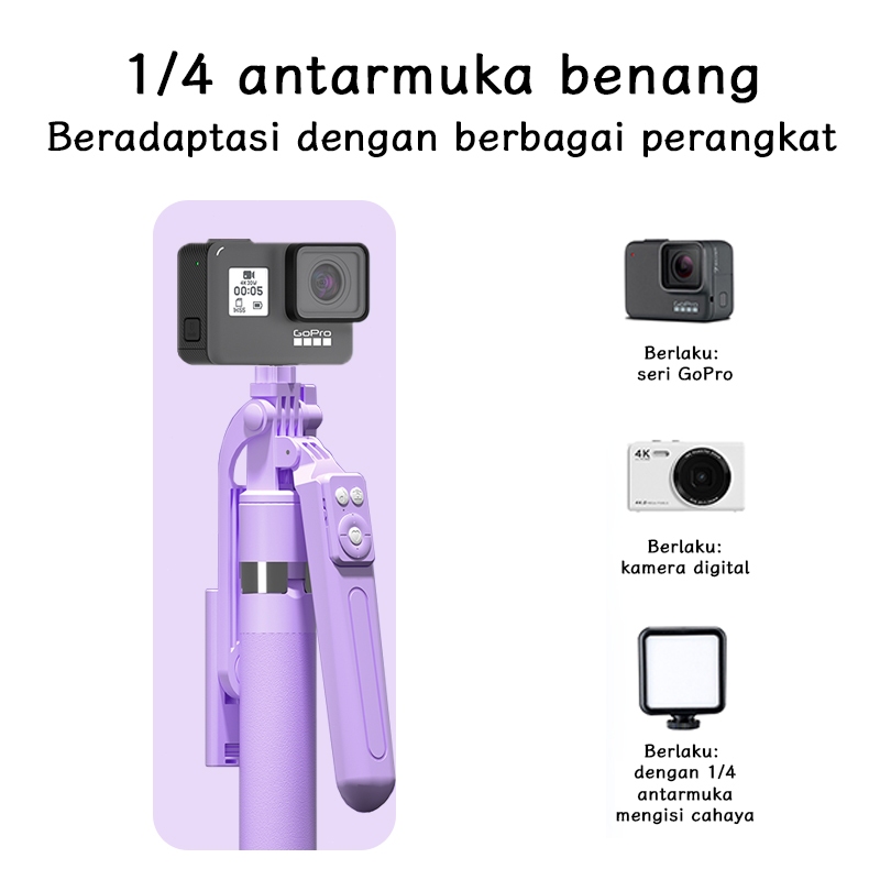TOOREA B16 Selfie Stick Tripod Tongsis HP Holder 170CM HP Kamera DSLR Tongsis Dengan Multifungsi Bluetooth 7 Tombol Remote Control Lampu LED Besar