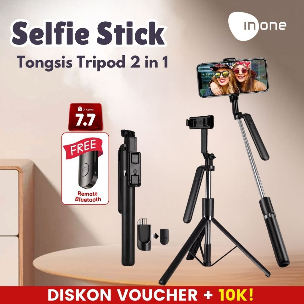 INONE Tongsis Tripod Bluetooth 170CM Grip Handle konten kreator Tripod Portable Kamera Hp