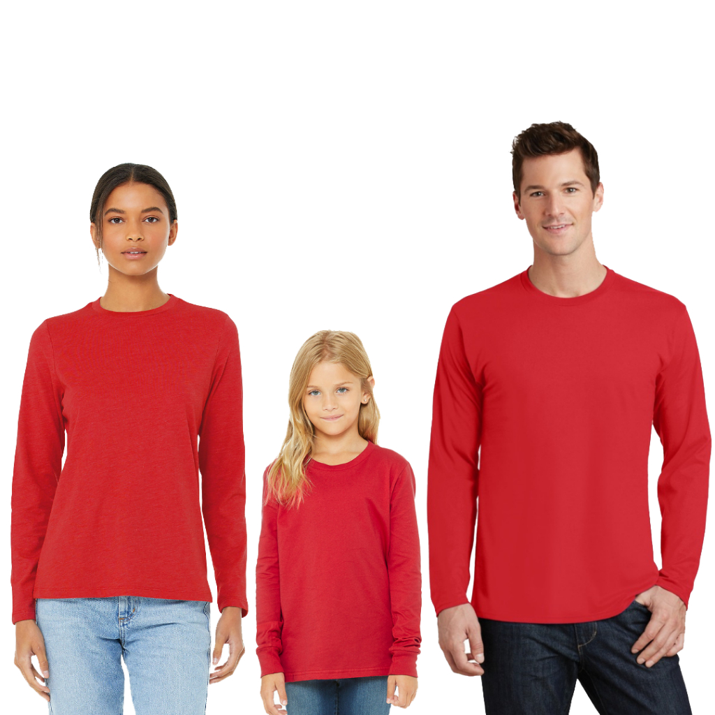 Kaos Lengan Panjang Warna Merah 17 Agustus Polos Untuk Anak dan Dewasa O Neck Unisex Cowok Cewek Cotton Combed 30s Kualitas Premium