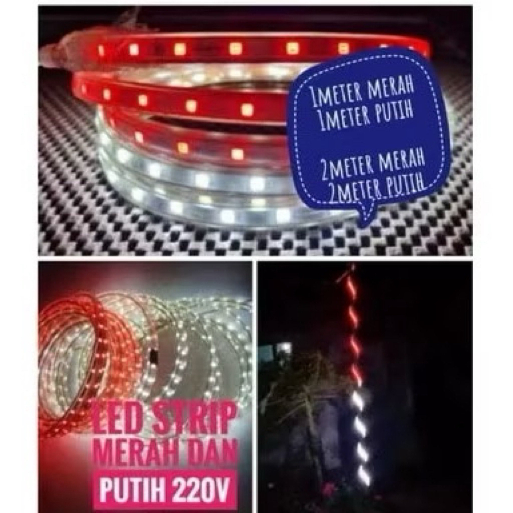 LAMPU LED STRIP 5050 MERAH PUTIH PANJANG 4 METER 6METER 8METER 10METER + ADAPTOR LAMPU AGUSTUS