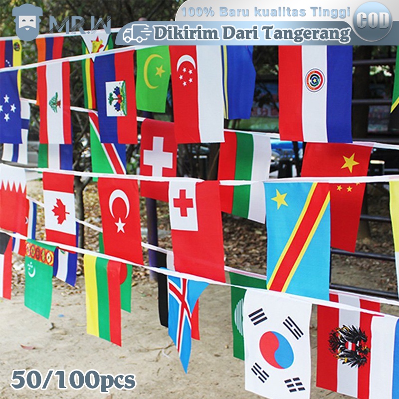 Bendera 100 Negara/100pcs Country Flag/Bendera Negara Dunia Renceng/Bendera Renceng Dekorasi Untuk Lebar Cafe Hotel Dekorasi