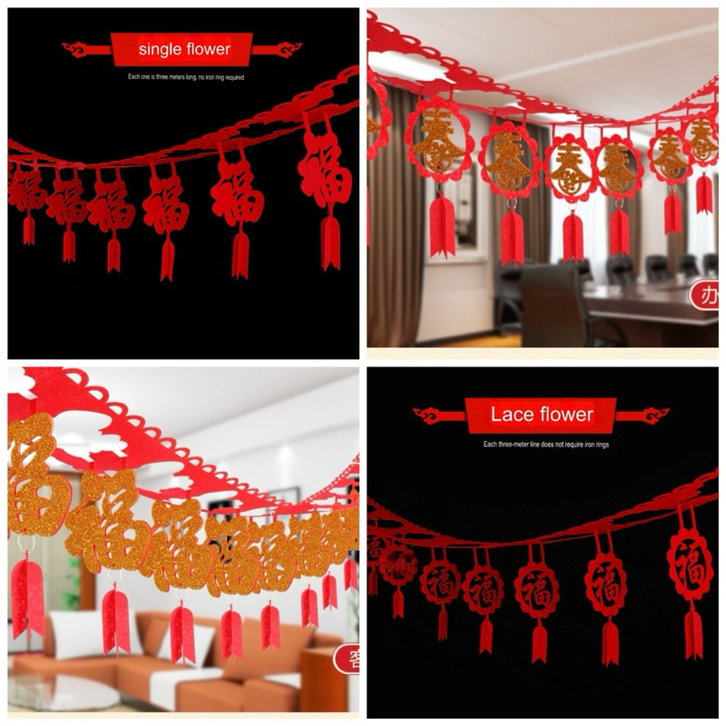 Garland Tarik Merah Imlek/Garland Tarik FUK Gold/Garland Tarik Fu Lace Flower A