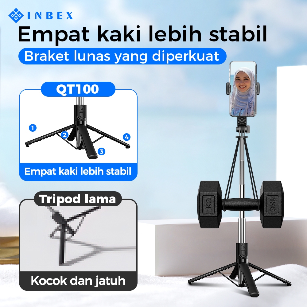 INBEX QT100 tripod Tongsis Selfie Stick Quadruped tripod hp with remote bluetooth tripod handphone