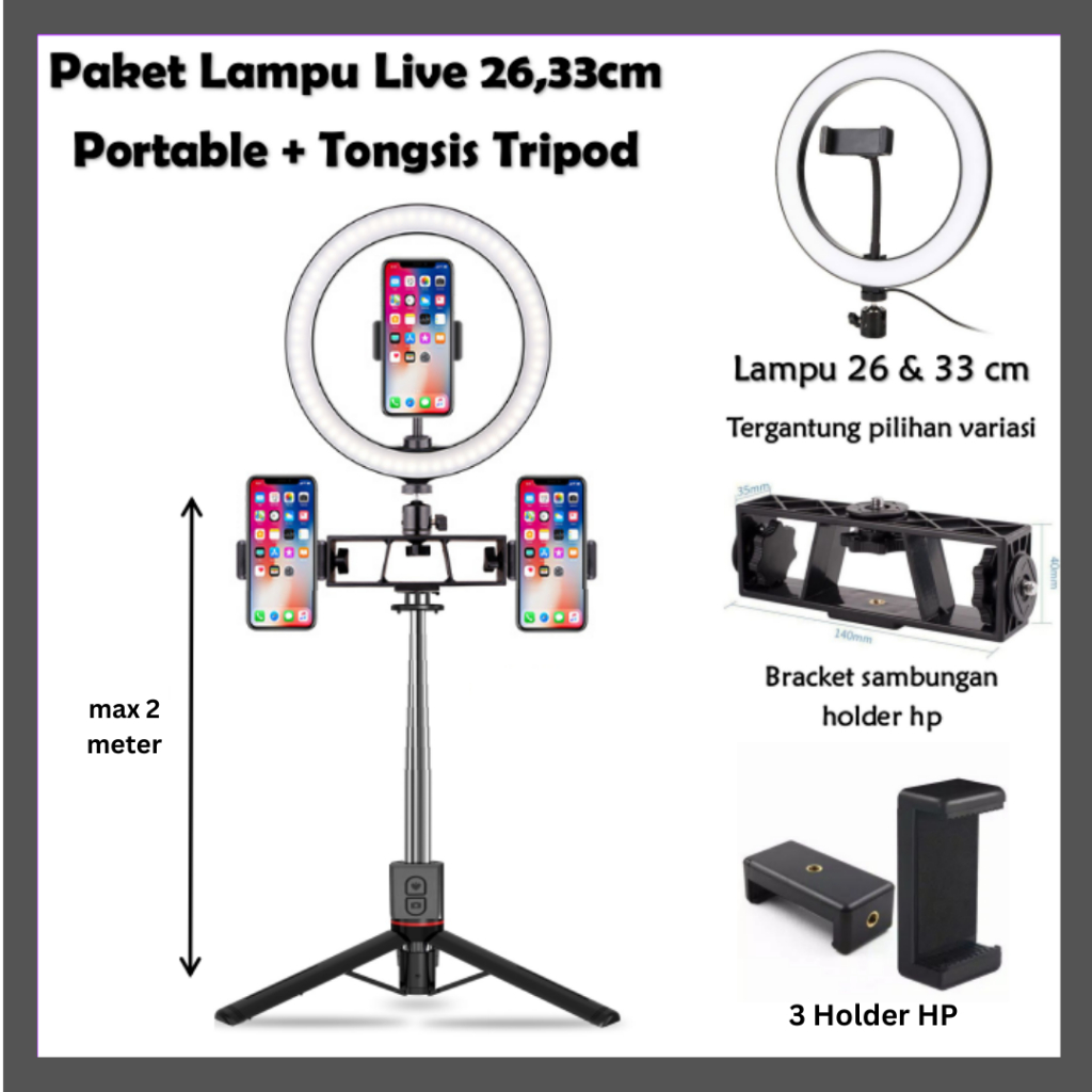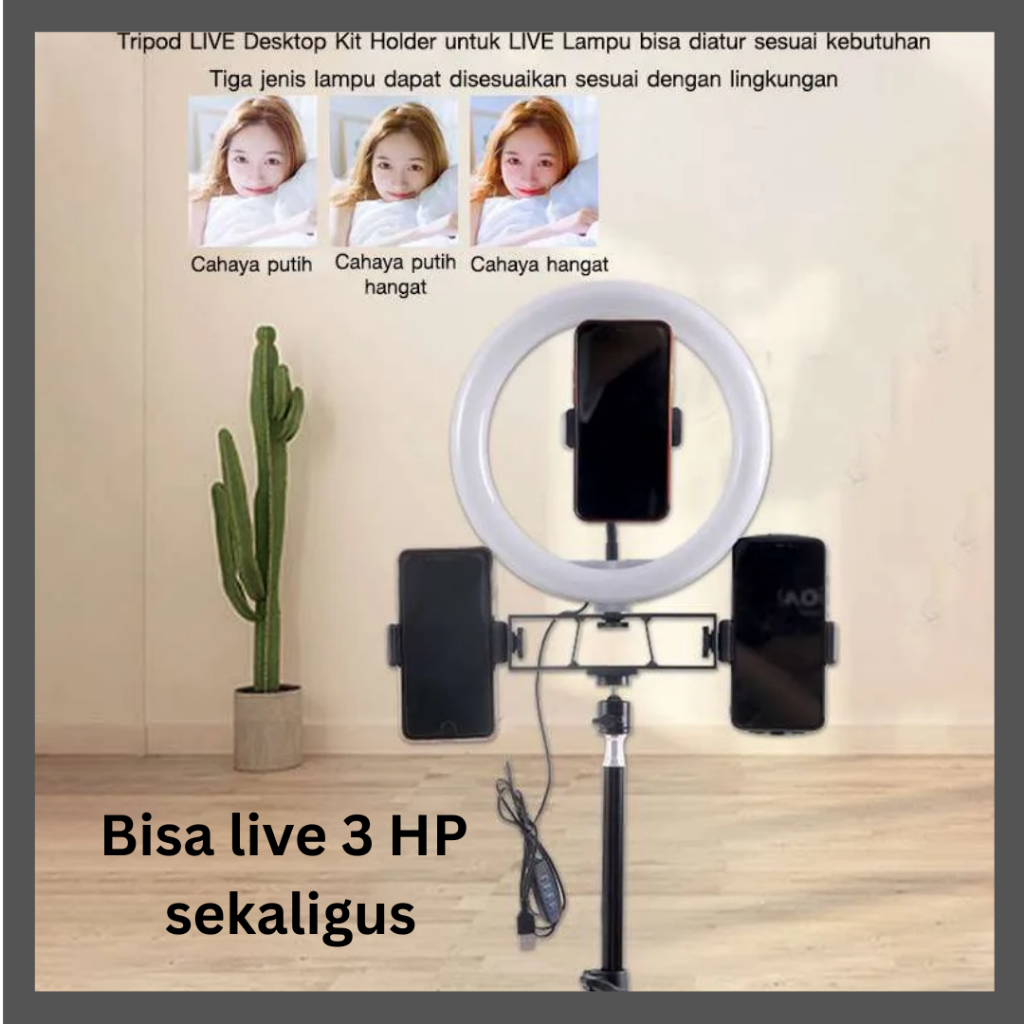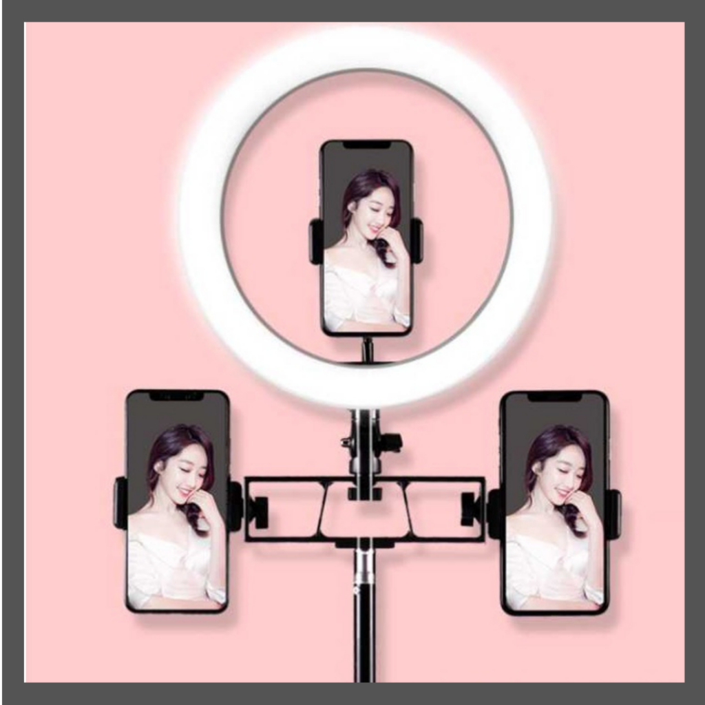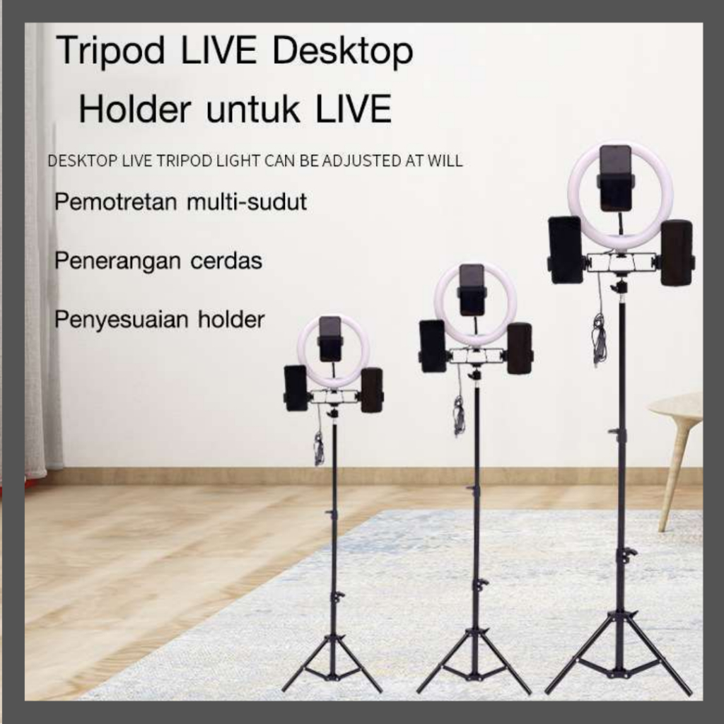 Lampu LED Ring Light 26/33/45 cm dan Tripod 2.1 M Free 3 Holder Hp Studio Streaming Konten Kreator