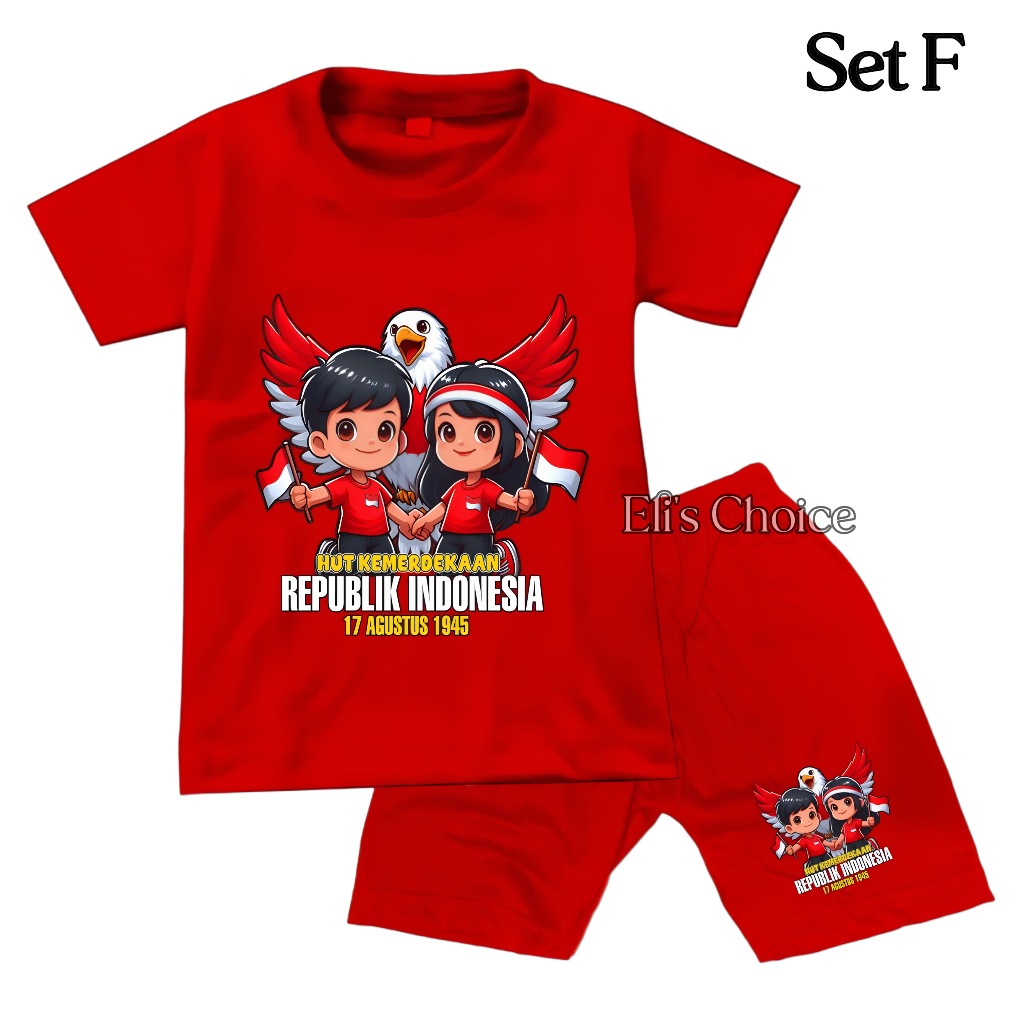 GROSIR SETELAN ANAK 17 AGUSTUS / SETELAN ANAK MOTIF KEMERDEKAAN INDONESIA HUT RI DIRGAHAYU 80