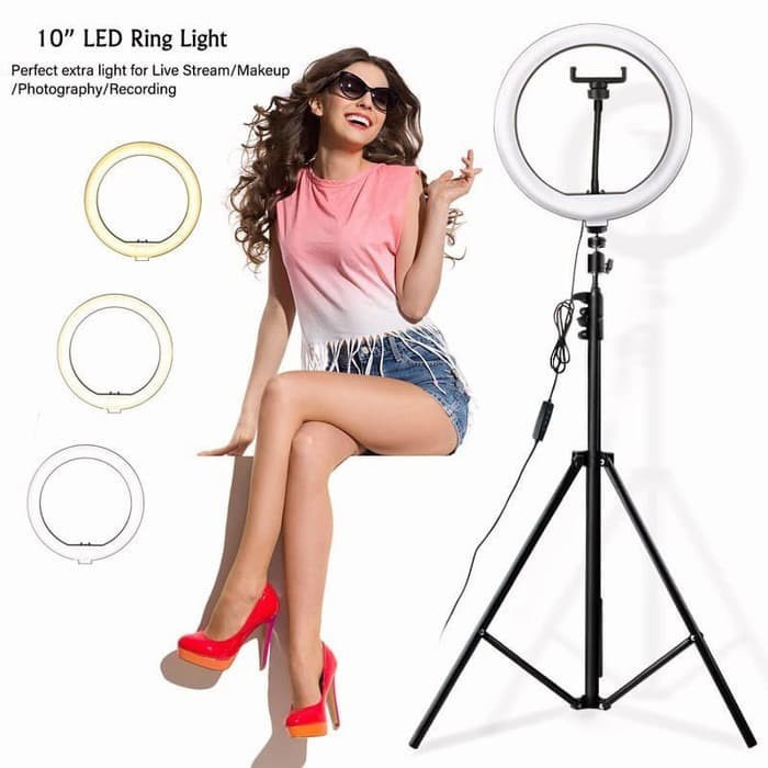 Ring Light Selfie 10" 26cm + Light Stand Tripod 2 Meter