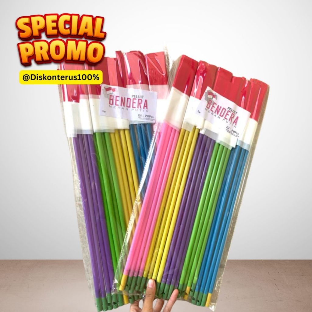 [1 Pack isi 20] Bendera PLASTIK Merah Putih Indonesia TONGKAT TANGKAI GAGANG Pluit Bendera tangan