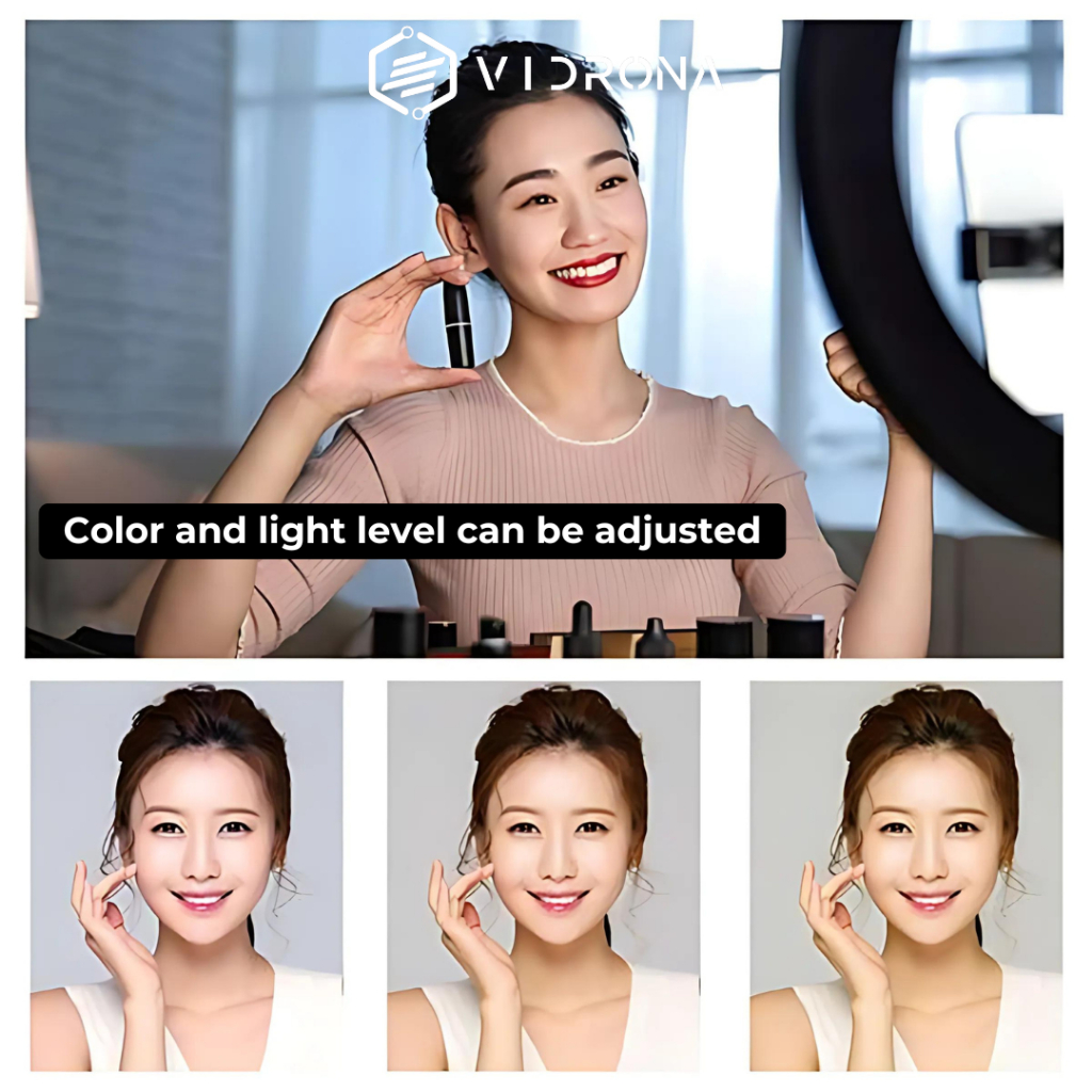 VIDRONA Tripod Ring Light 26CM - Stand HP 1M Fleksibel untuk Live & Makeup"