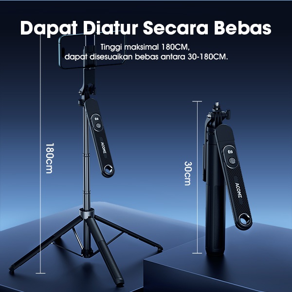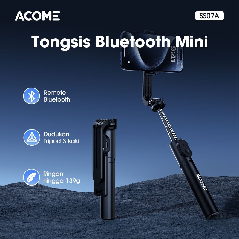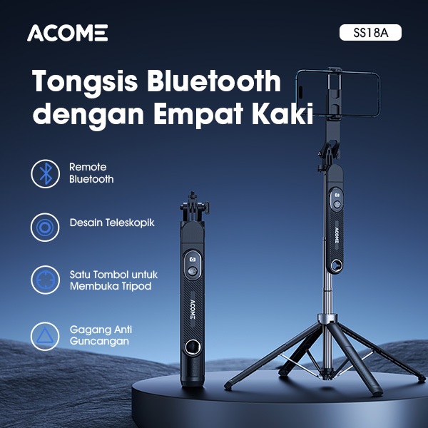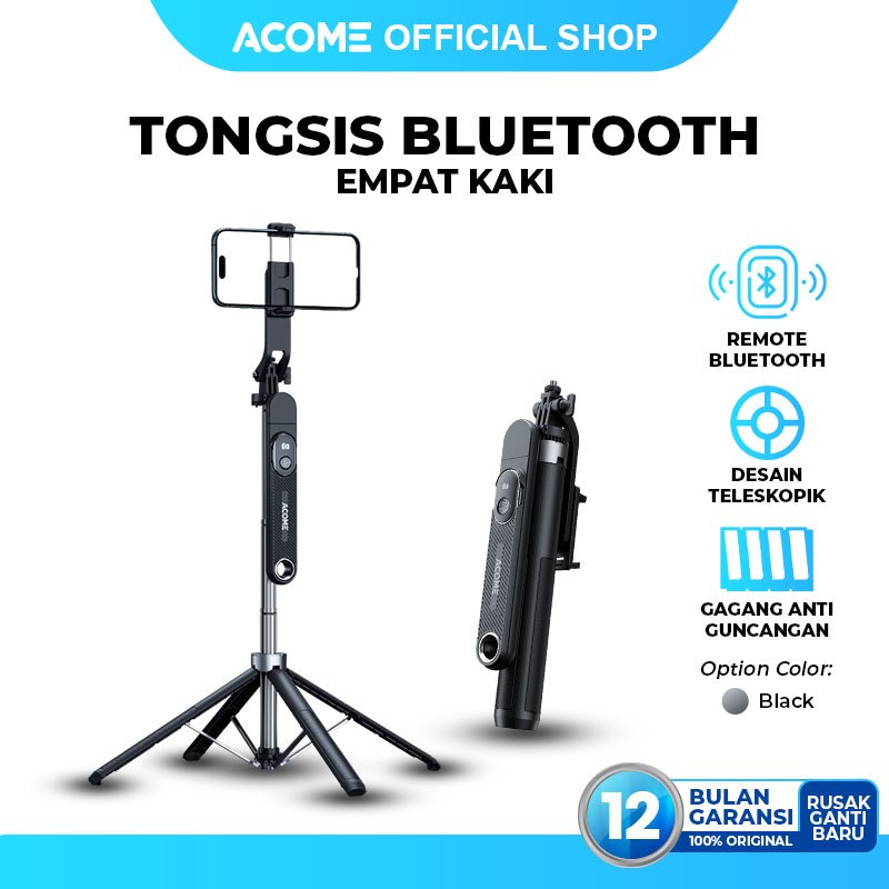 ACOME Tongsis Tripod Selfie Bluetooth Dengan Remote Control / Selfie Stick Portable Flexible Tripod HP SS07A/SS18A/PG01 Original - Garansi Resmi 1 Tahun