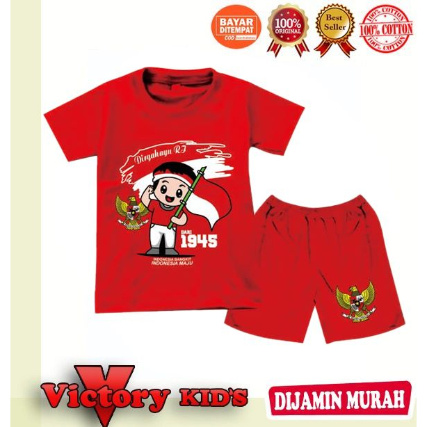 Victory kids setelan lengan pendek anak laki-laki dan perempuan MOTIF 17 AGUSTUSAN umur 1-10 tahun
