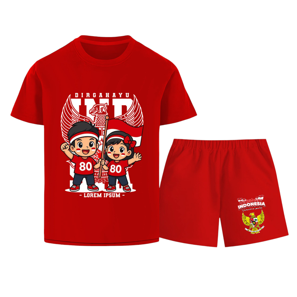 Victory kids setelan tangan pendek anak laki-laki dan perempuan MOTIF 17 AGUSTUSAN 1-10 tahun
