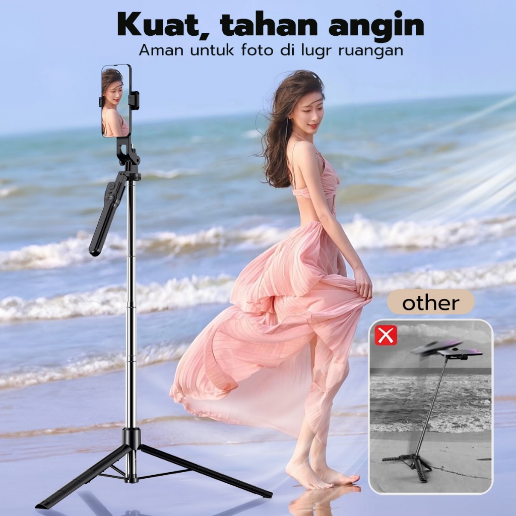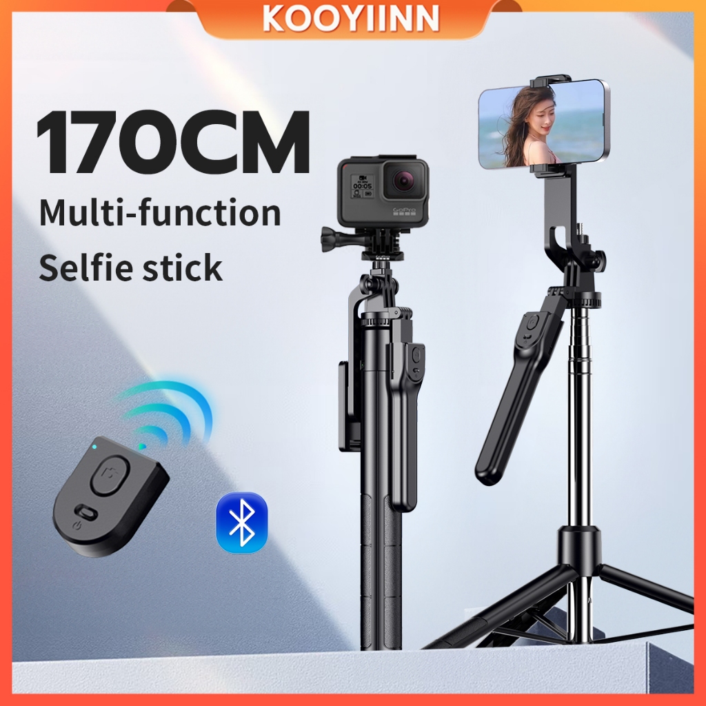 KOOYIINN 170CM Tongsis Tripod Bluetooth Remote V5.3 Selfie Stick Hand stabilizer Aluminium untuk Hp Kamera DSLR tongsis 4in1 1/4 Adaptor - TR13